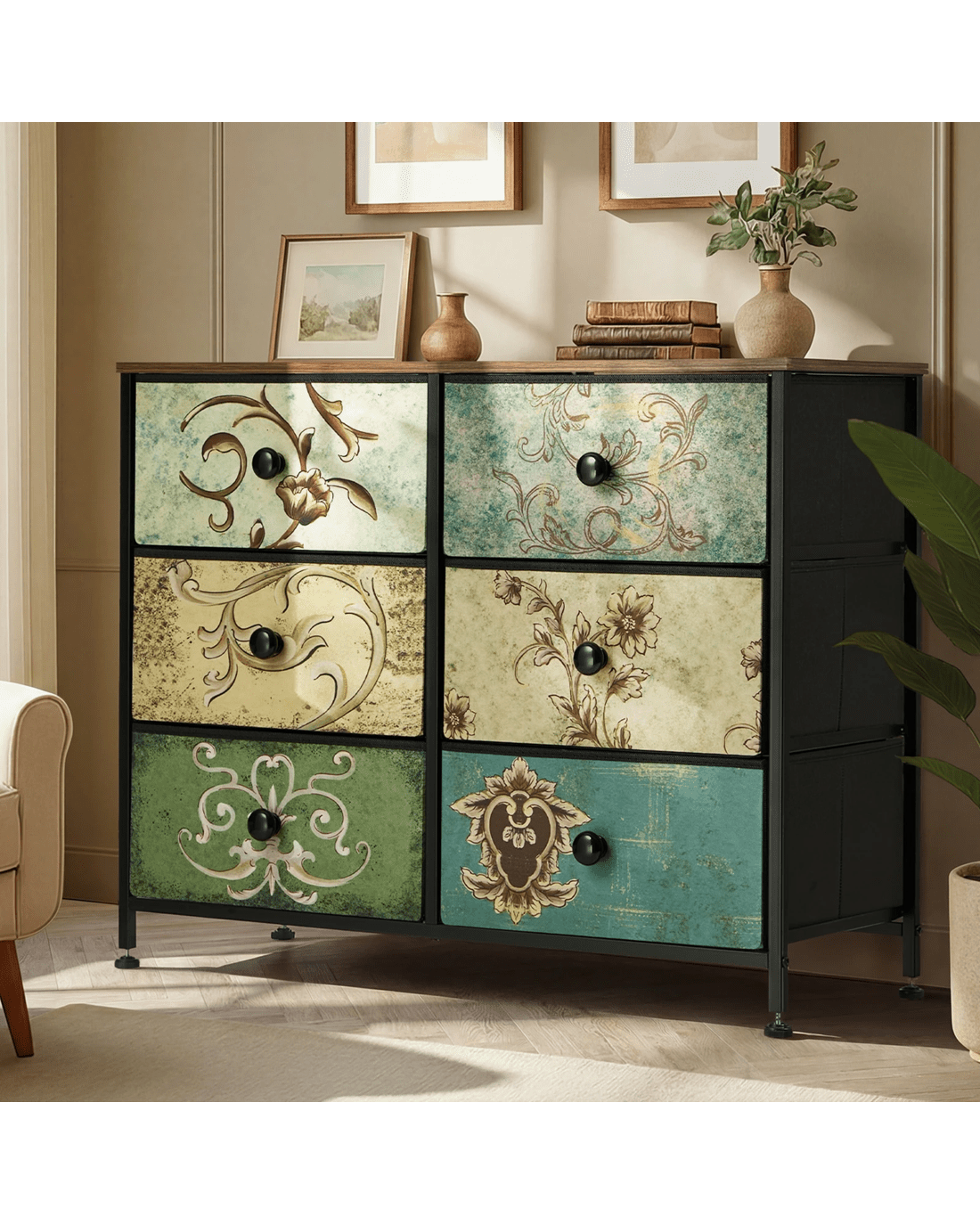 Sold by Kamprad's Oikos 1943Oikiture 6 Chest of Drawers Fabric Storage Cabinet Retro Lowboy Organizer - Multi