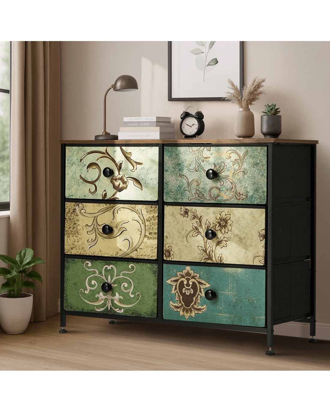Dramatised with stunning vintage art, our Oikiture Chest of Drawers features stylish sepia-tinged printed drawer graphics to portray a touch of colourful retro vibes to your home decor.