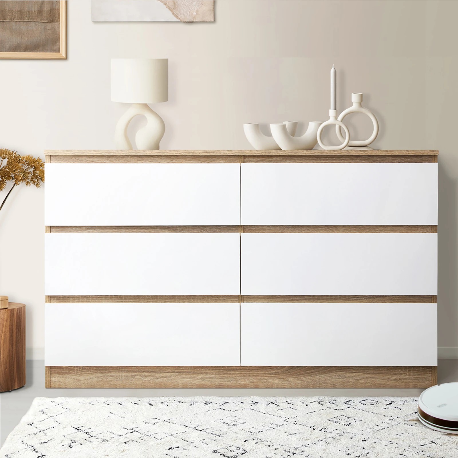 Oikiture 6 Chest Of Drawers Lowboy Dresser Table Storage Cabinet - Multi