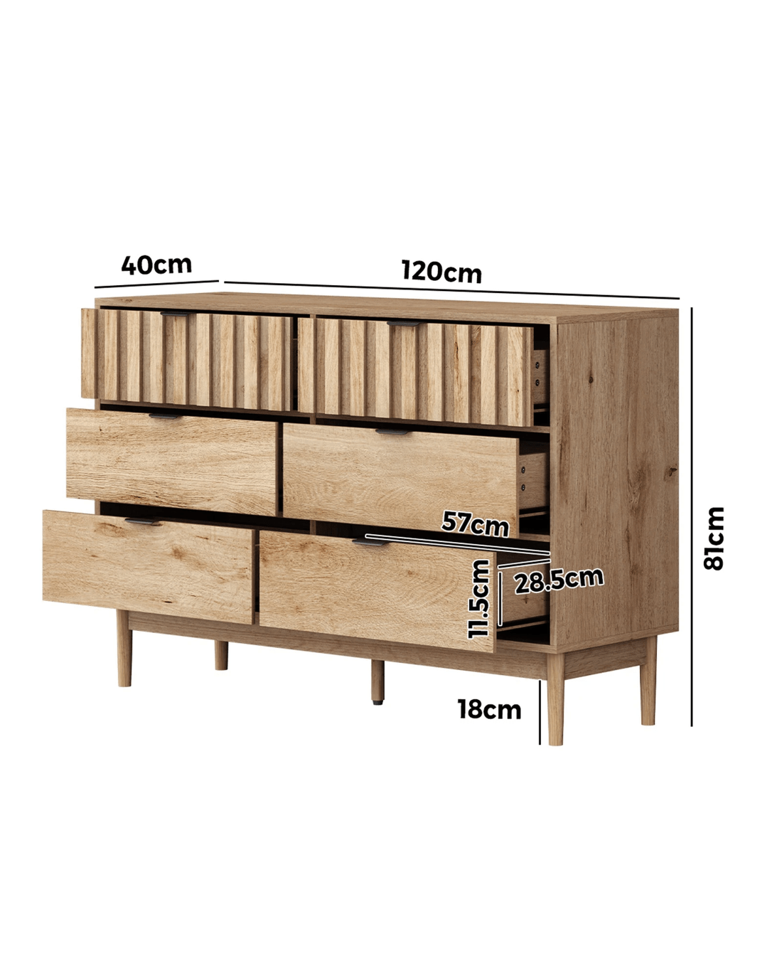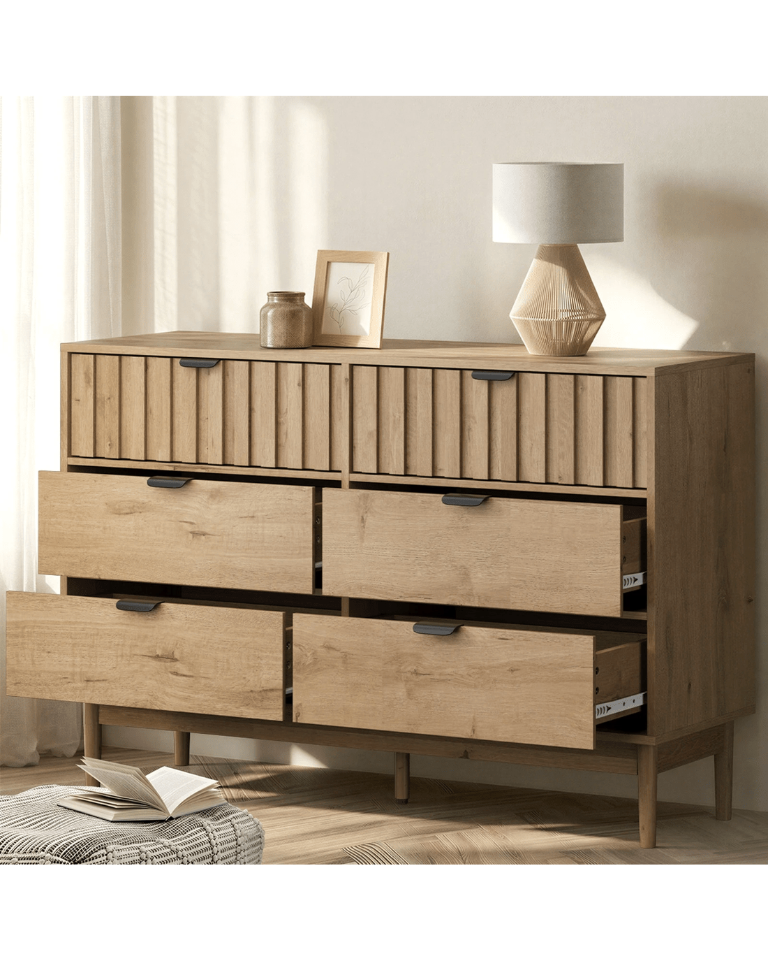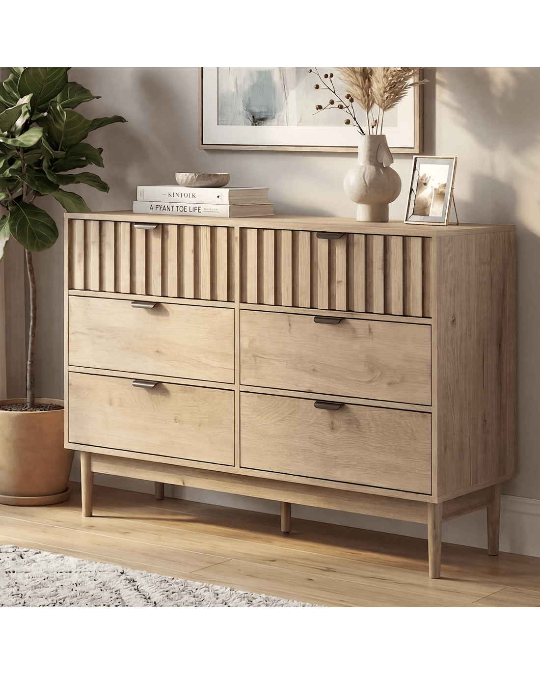 Oikiture 6 Chest of Drawers Organizer Dresser Storage Cabinet Lowboy - Natural