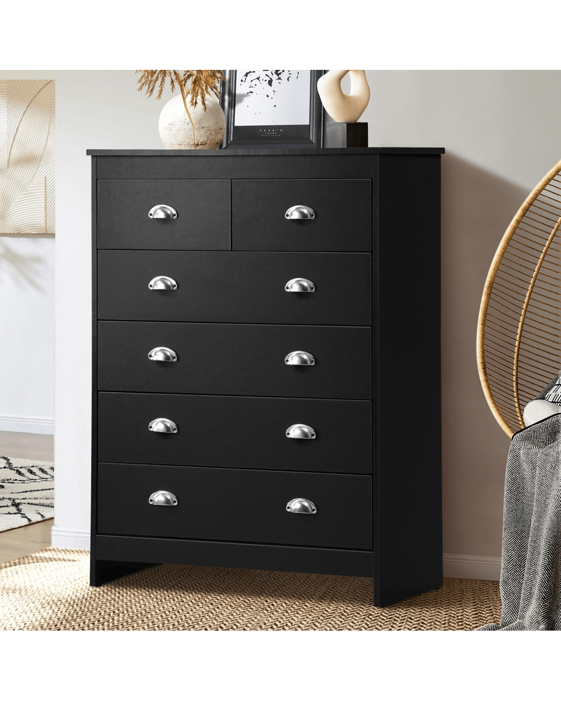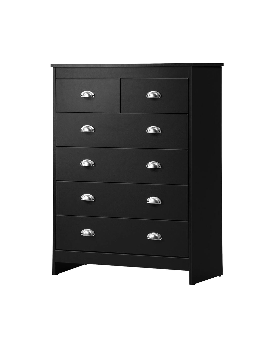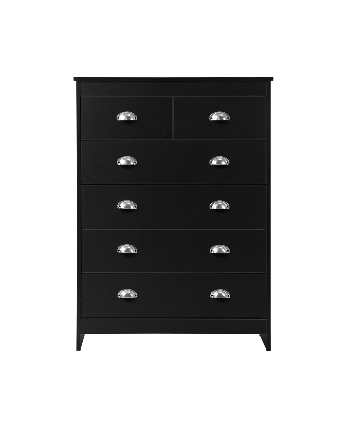 Oikiture 6 Chest of Drawers Tallboy Dresser Table Storage Cabinet - Black