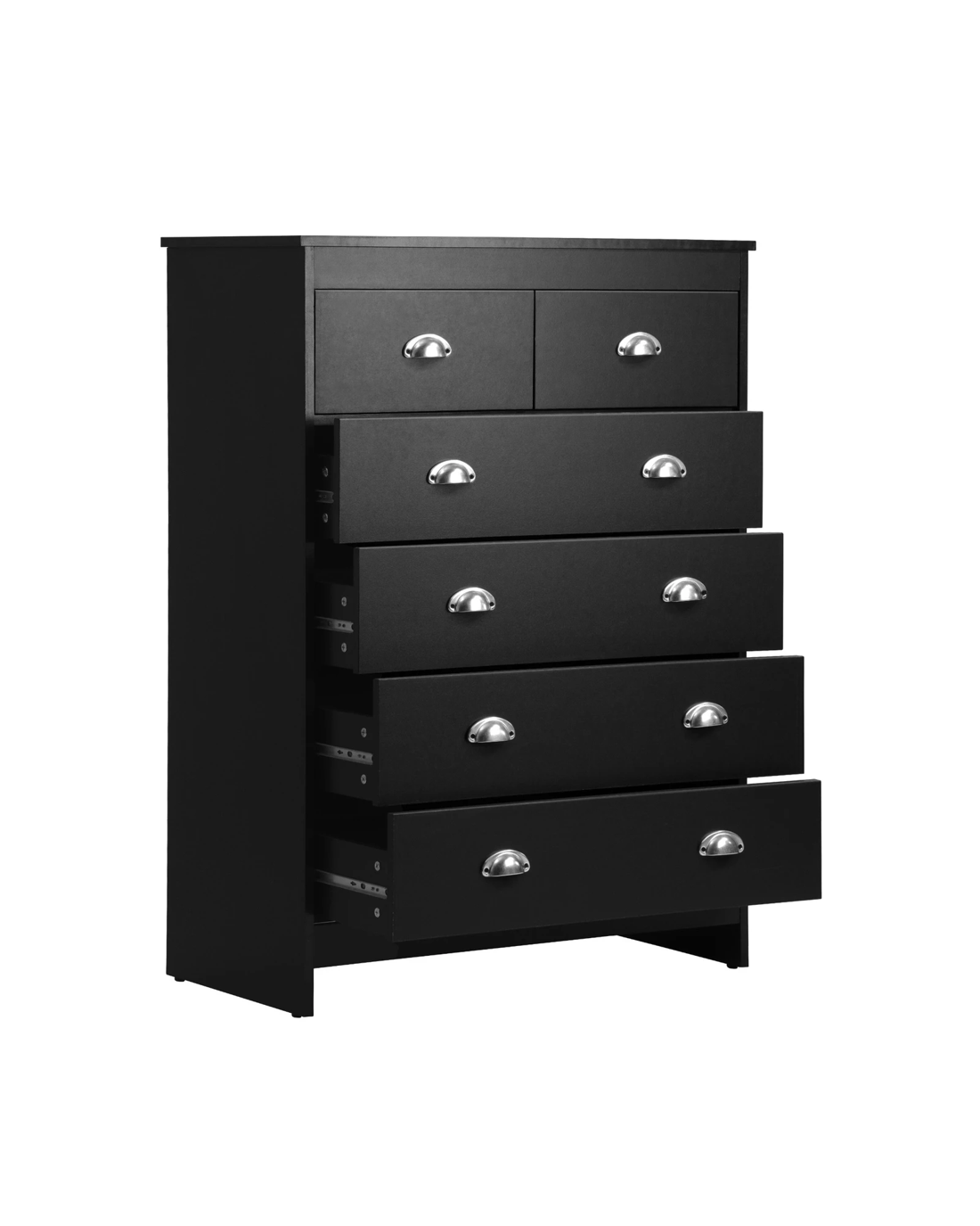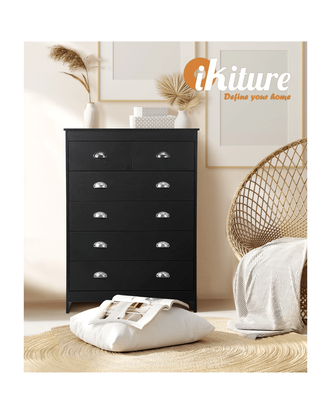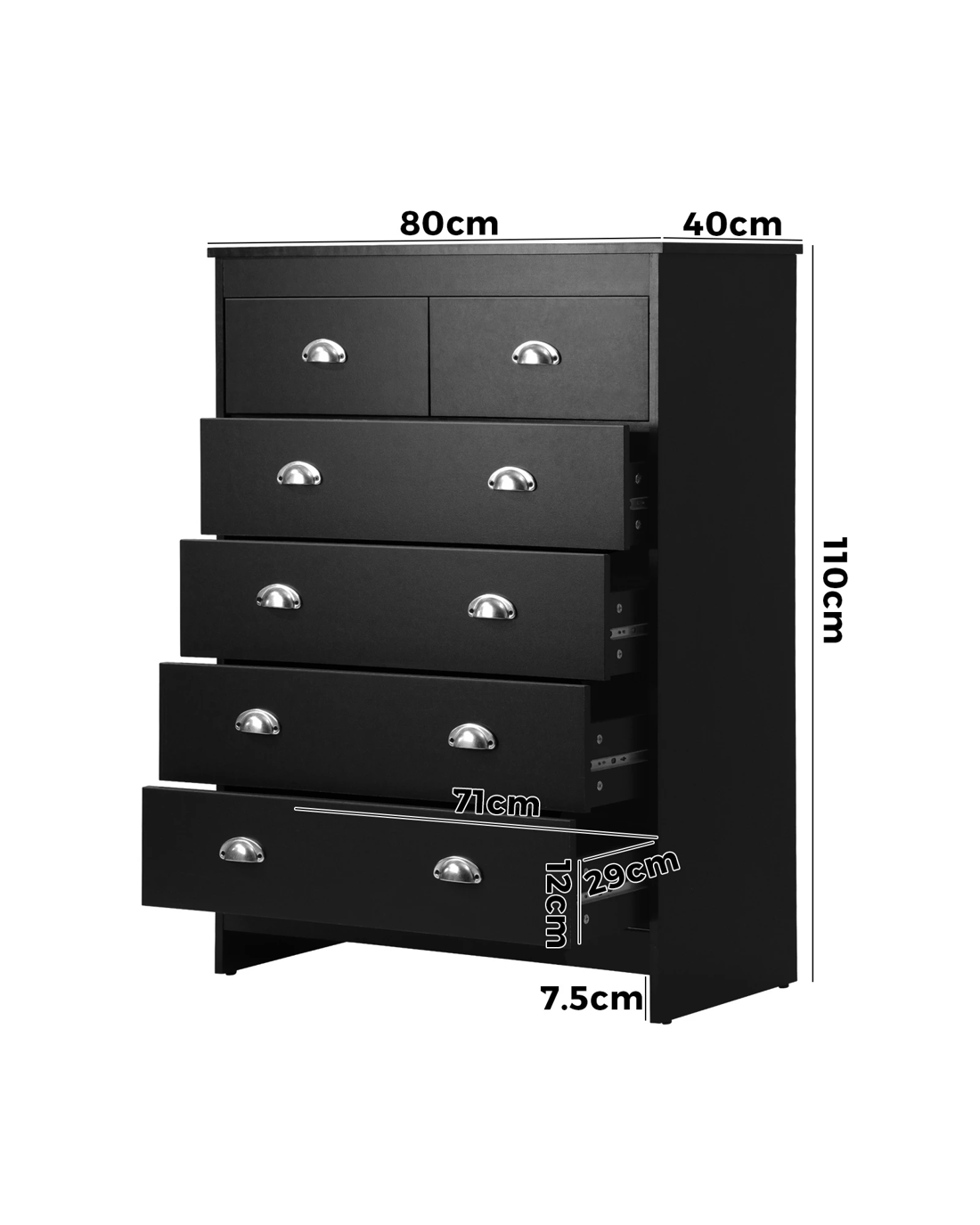 Oikiture 6 Chest of Drawers Tallboy Dresser Table Storage Cabinet - Black