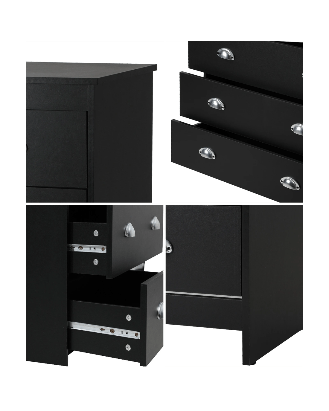 Oikiture 6 Chest of Drawers Tallboy Dresser Table Storage Cabinet - Black