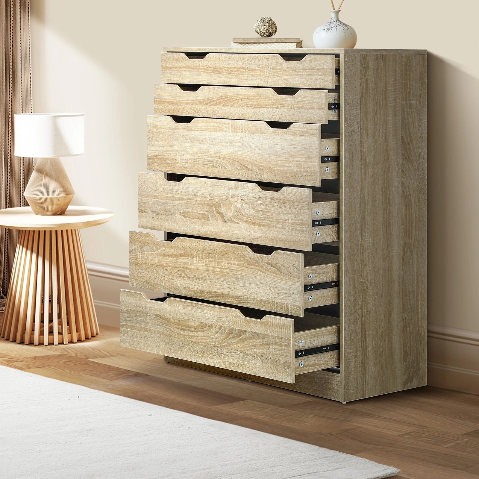 Oikiture 6 Chest Of Drawers Tallboy Storage Cabinet Dresser - Natural