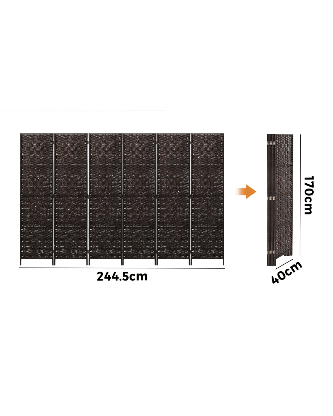 Overall dimensions: 244.5cm (W) x 2cm (D) x 170cm (H)