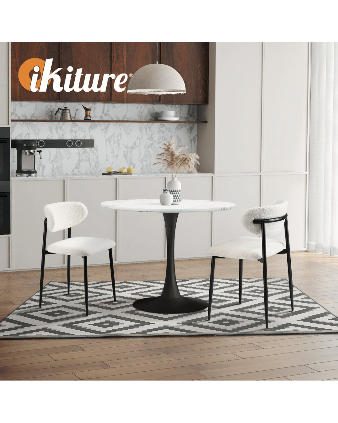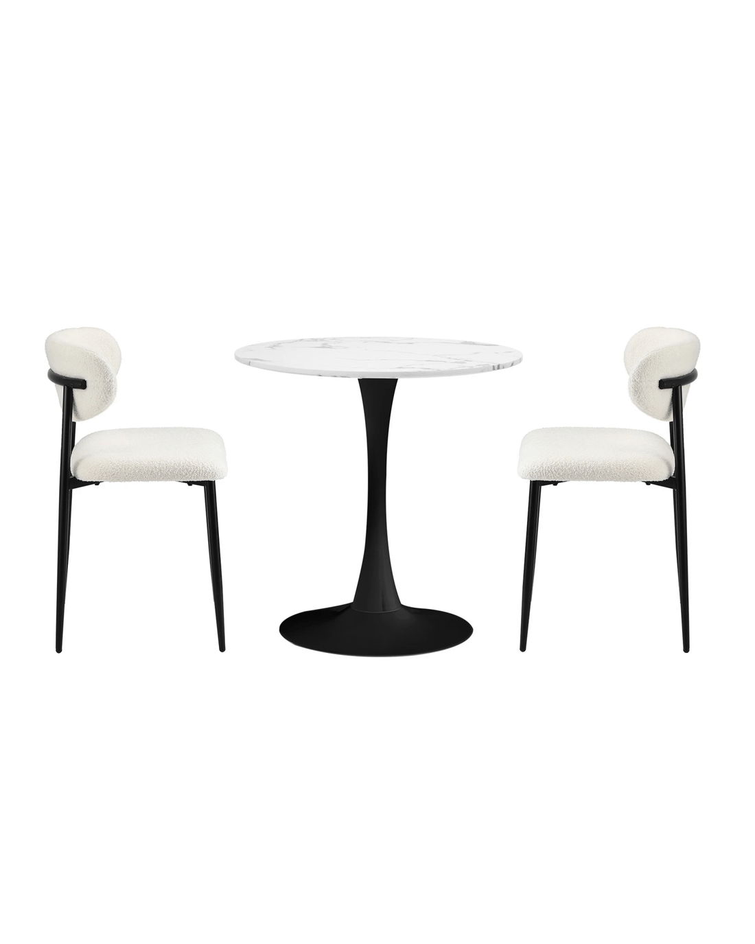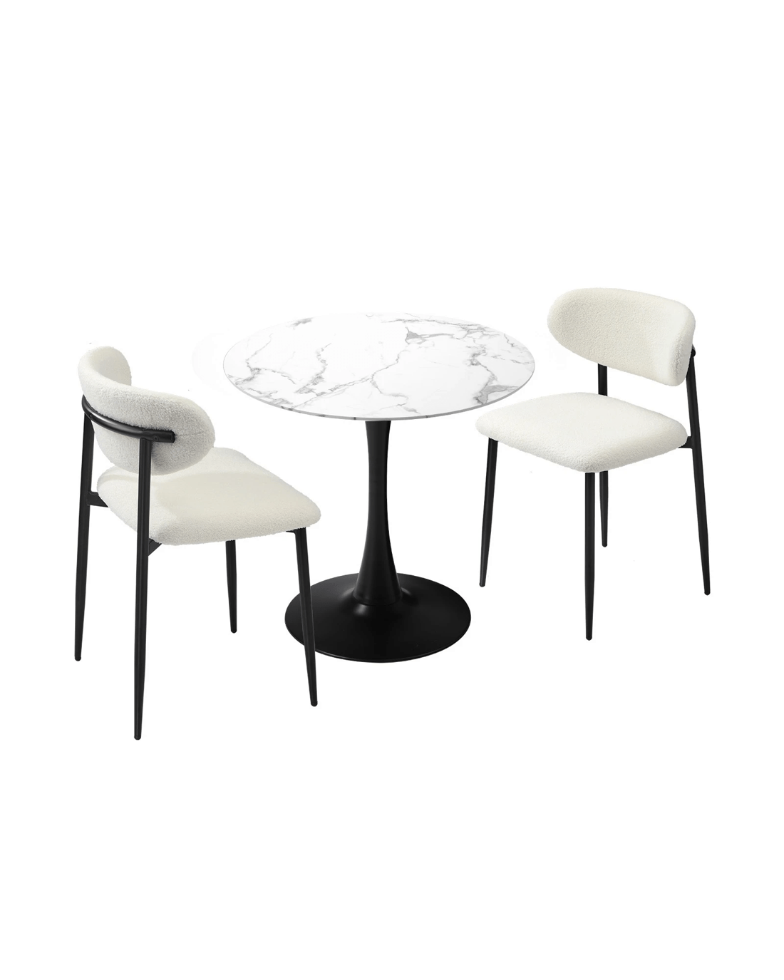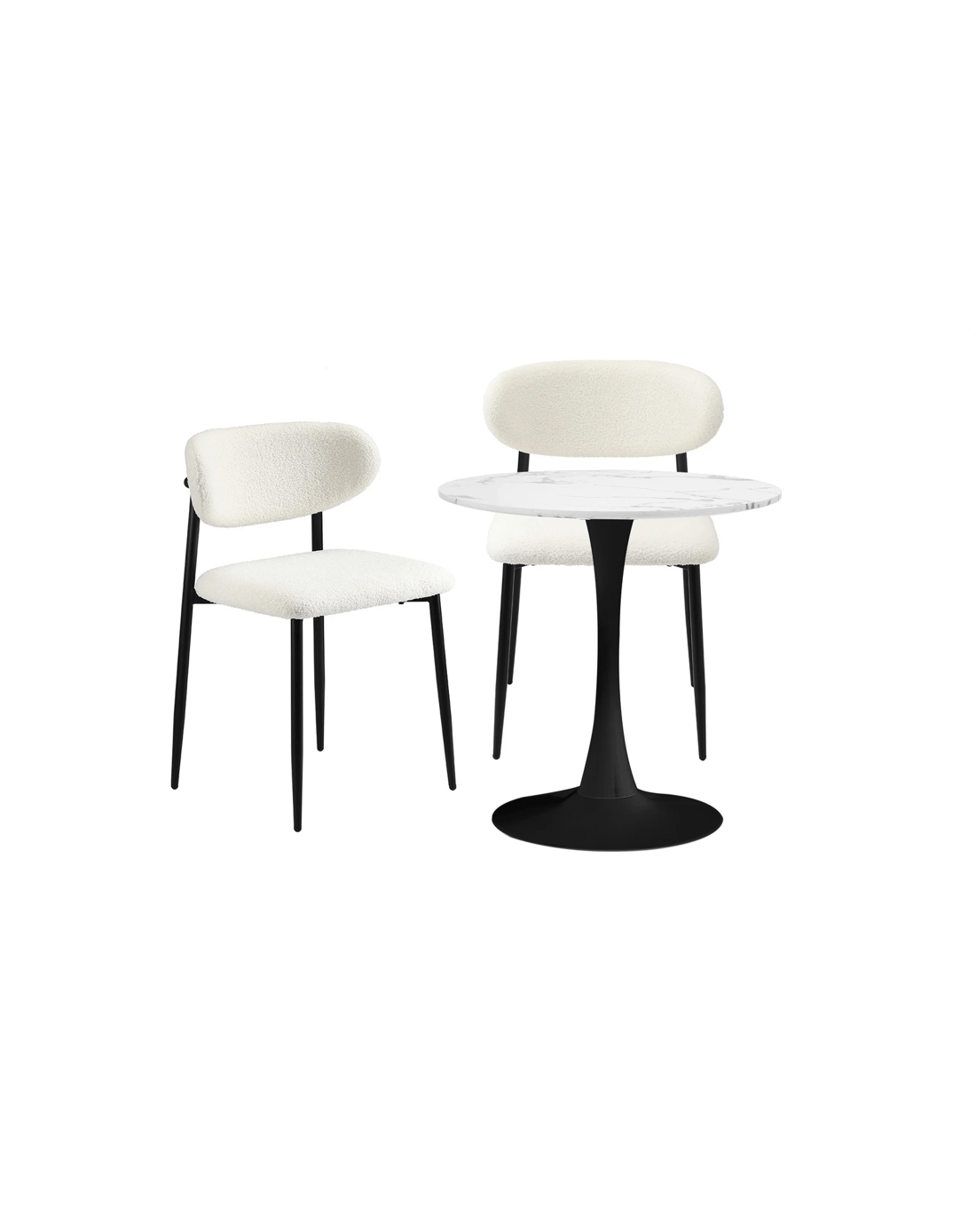 Sold by Kamprad's Oikos 1943Oikiture 60cm Round Dining Table with 2x Dining Chairs Boucle - Multi