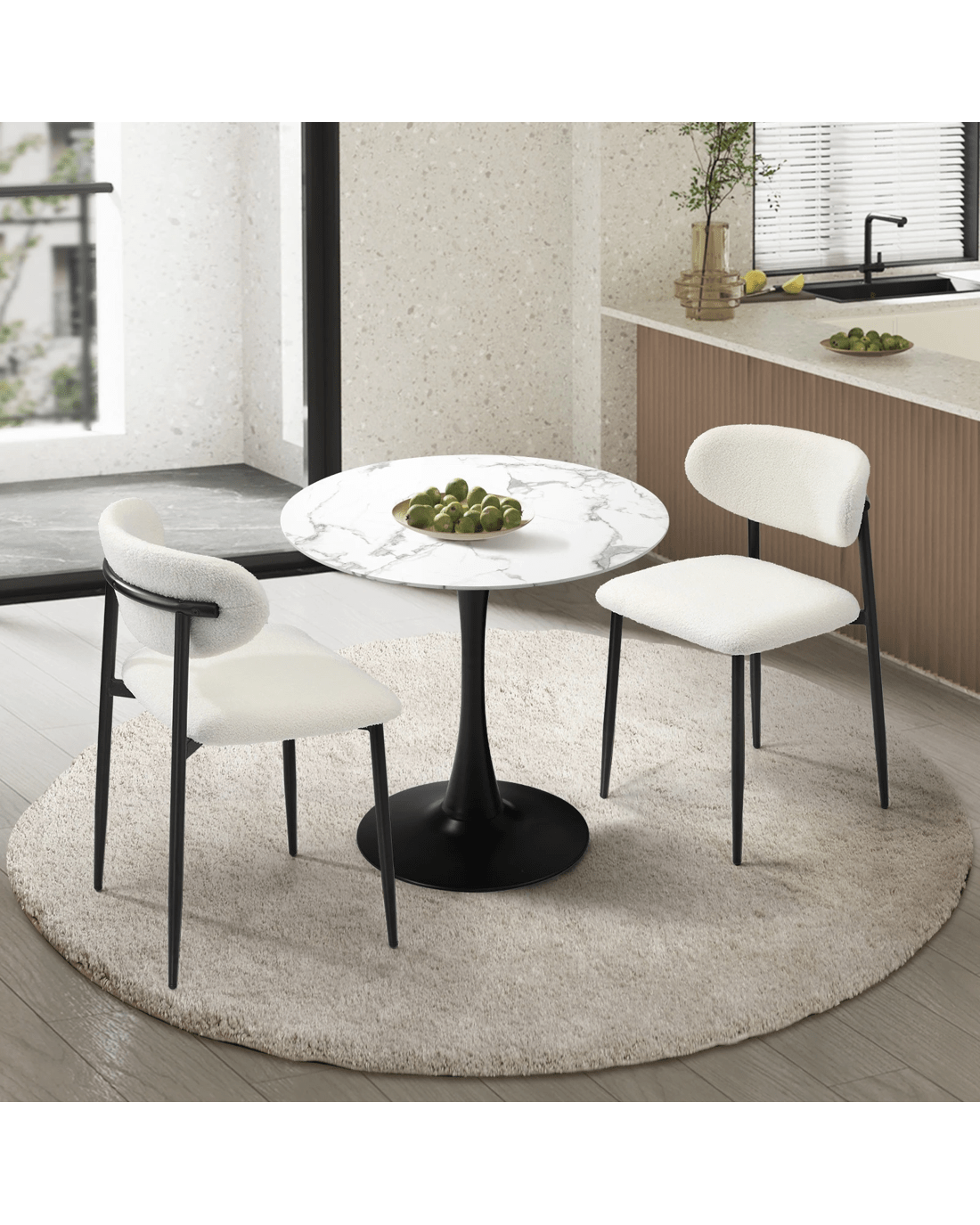 Experience the cohesive aesthetics of this set, where the synergy between the dining table and Boucle Dining Chairs creates a curated and refined look for your dining space. Meticulously selected materials and finishes ensure that every element complements the other, enhancing the overall appeal of your home.