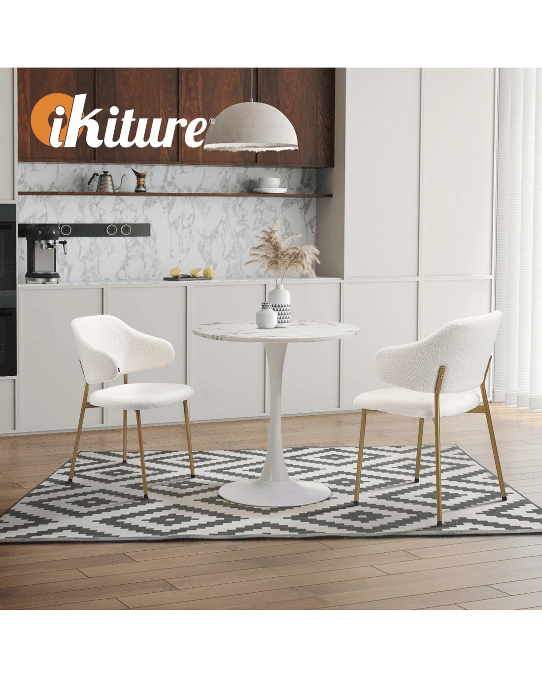 Immerse yourself in the epitome of modern elegance with our Dining Table and Sherpa Dining Chairs Set by Oikiture. The sleek lines of the contemporary dining table set the stage for a dining experience that seamlessly blends sophistication with comfort. Paired with our sumptuous Sherpa Dining Chairs, the set becomes a statement piece that captures attention and admiration.