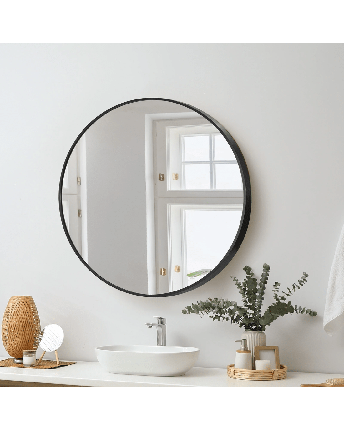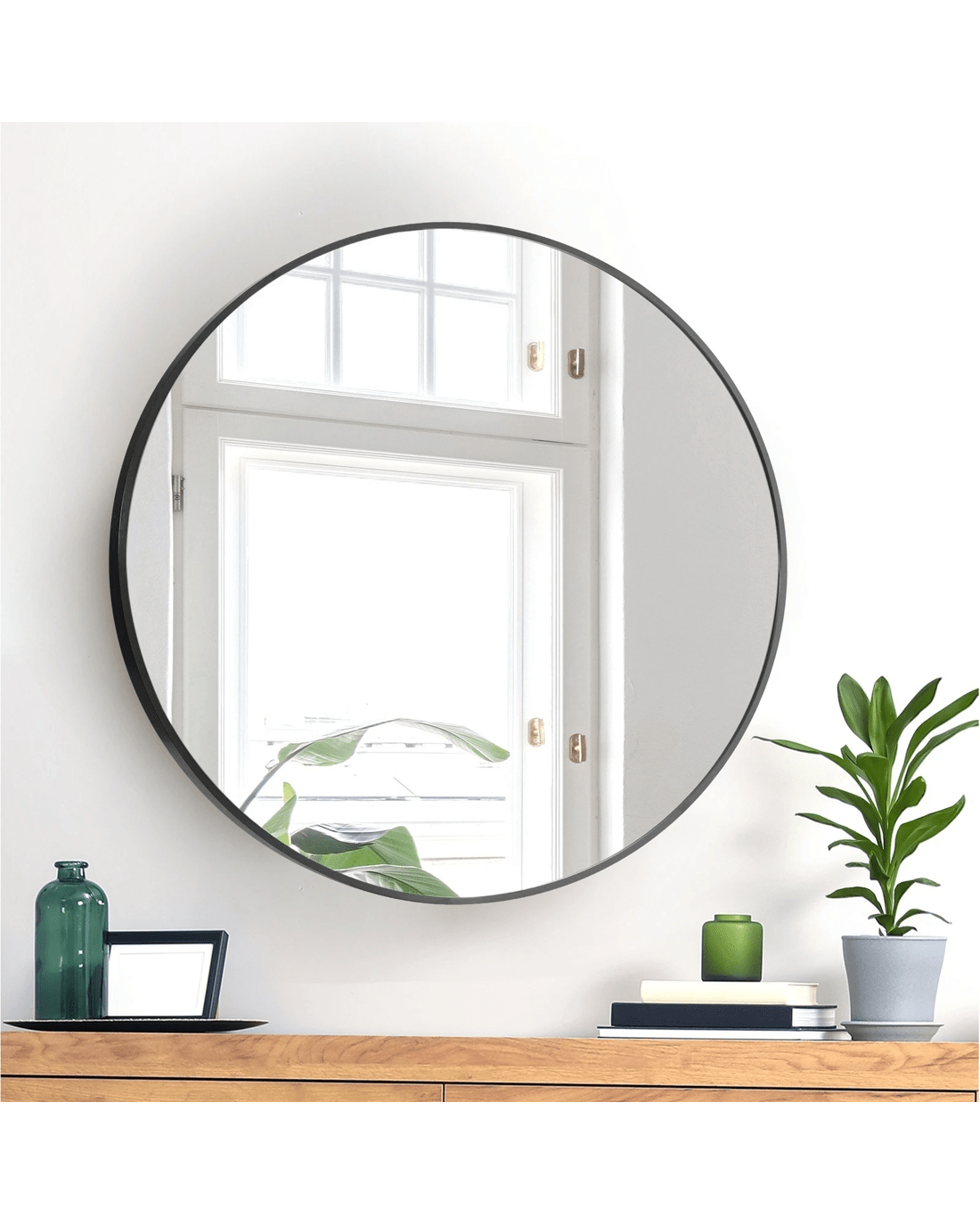 Sold by Kamprad's Oikos 1943Oikiture 60cm Wall Mirrors Round Makeup Mirror Home Decor Living Room - Black