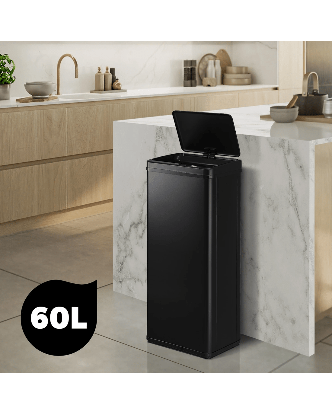 Sold by Kamprad's Oikos 1943Oikiture 60L Motion Sensor Rubbish Bin - Black