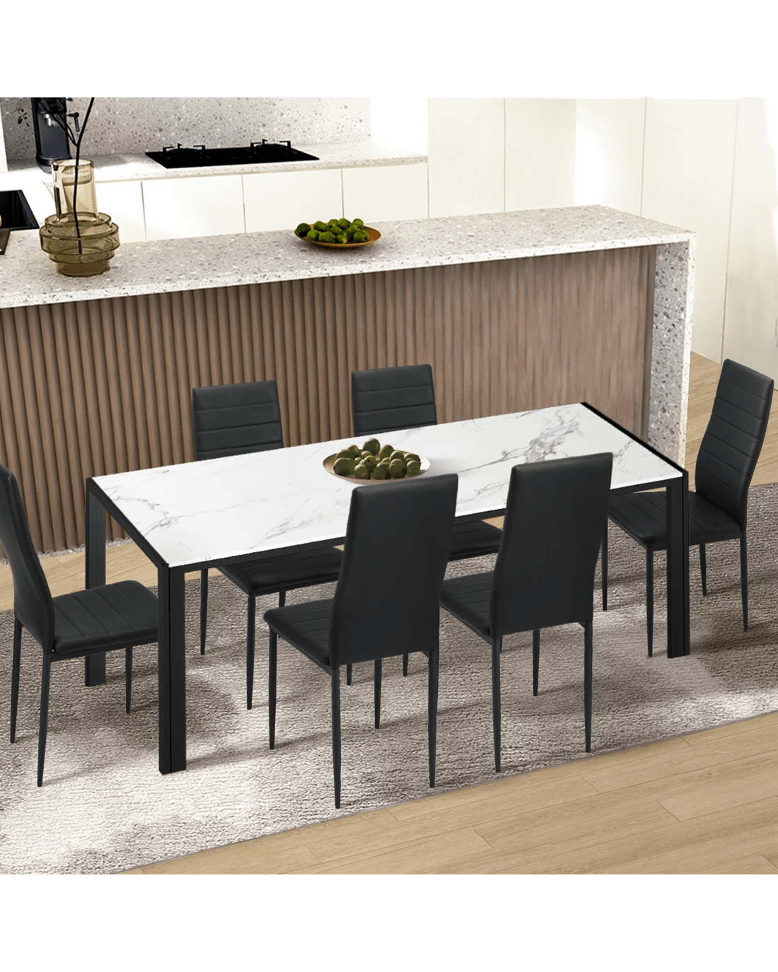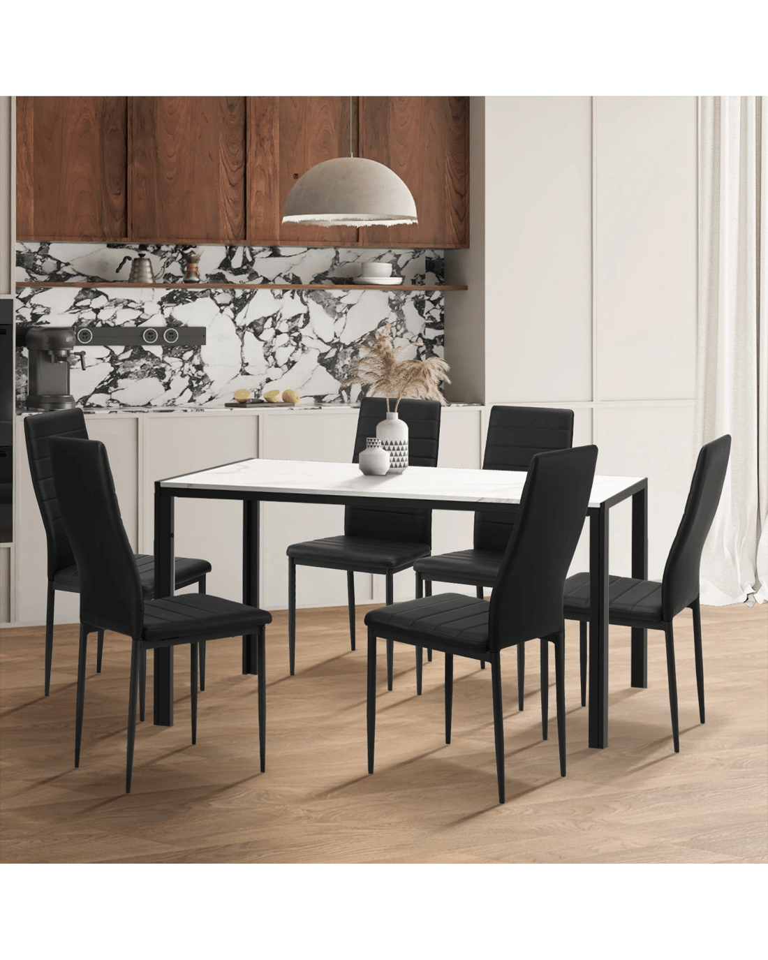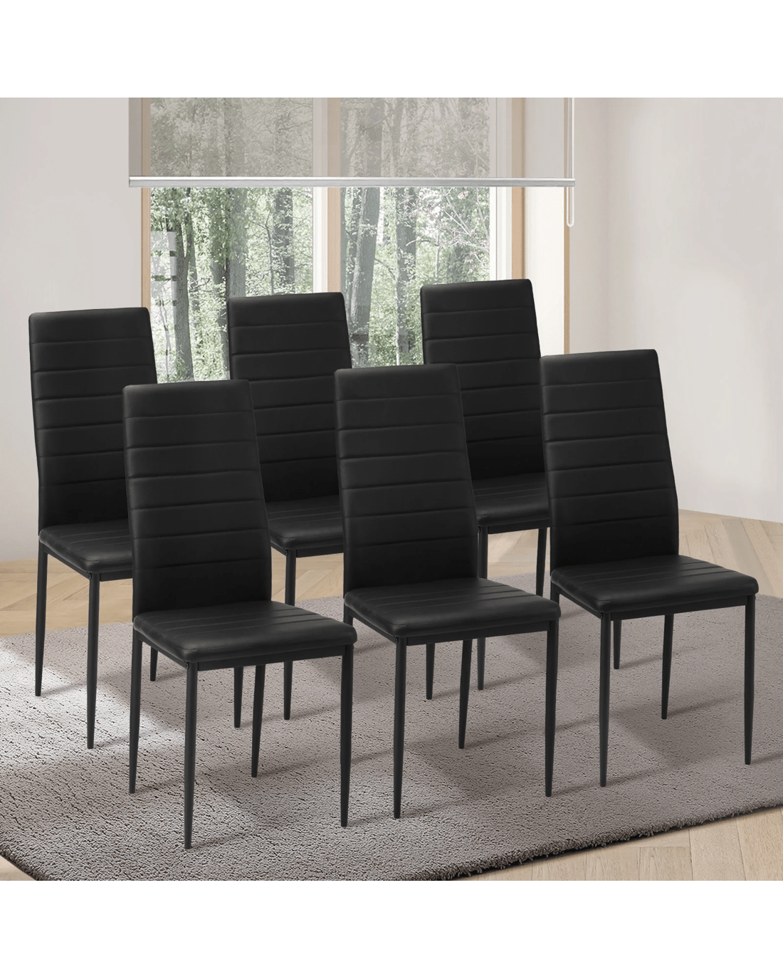 Oikiture 6pcs Dining Chairs High-back Kitchen Chair Padded Faux Leather - Black