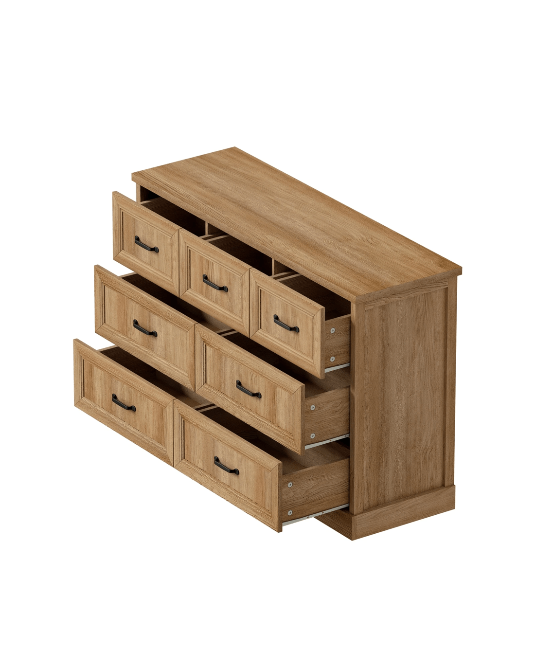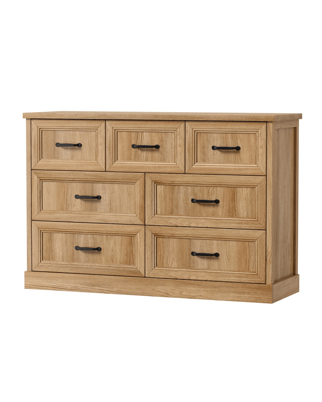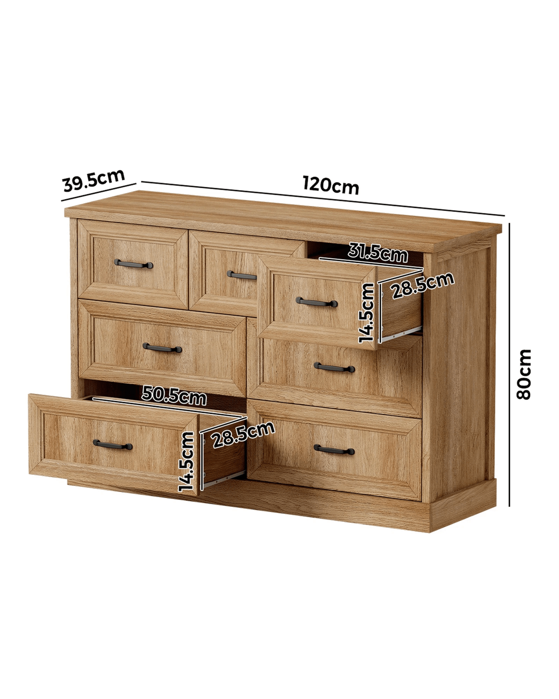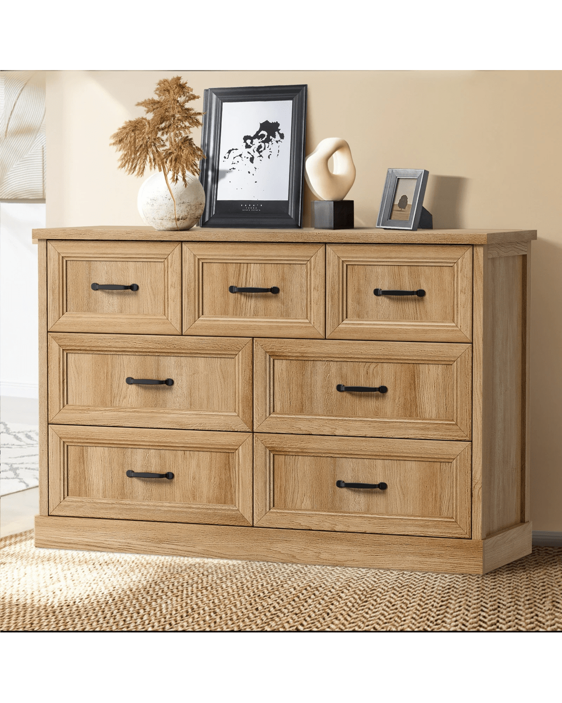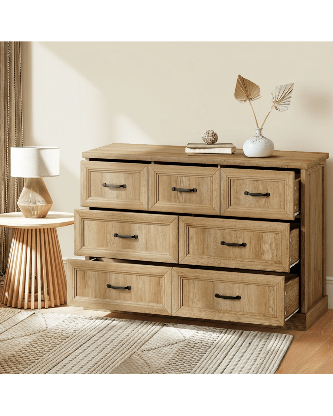 Oikiture 7 Chest of Drawers Bedside Dresser Tallboy Storage Bedroom - Natural