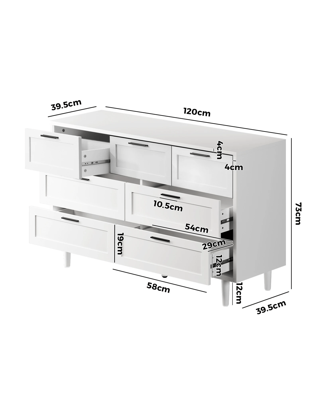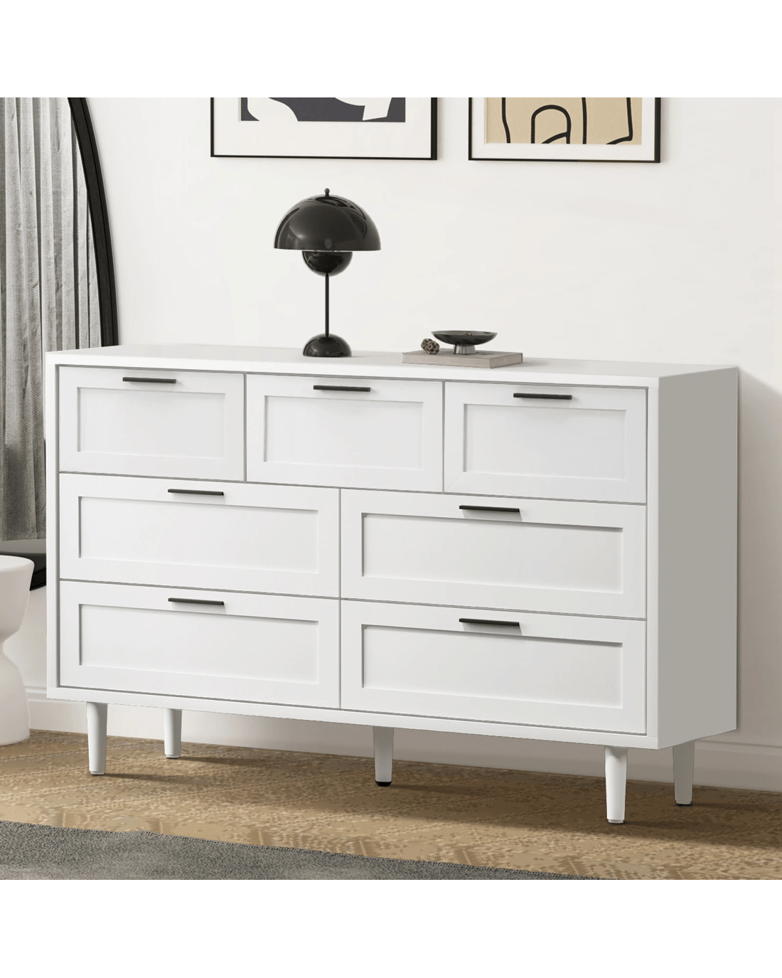 Oikiture 7 Chest Of Drawers Dresser Chest Storage Cabinet Lowboy - White