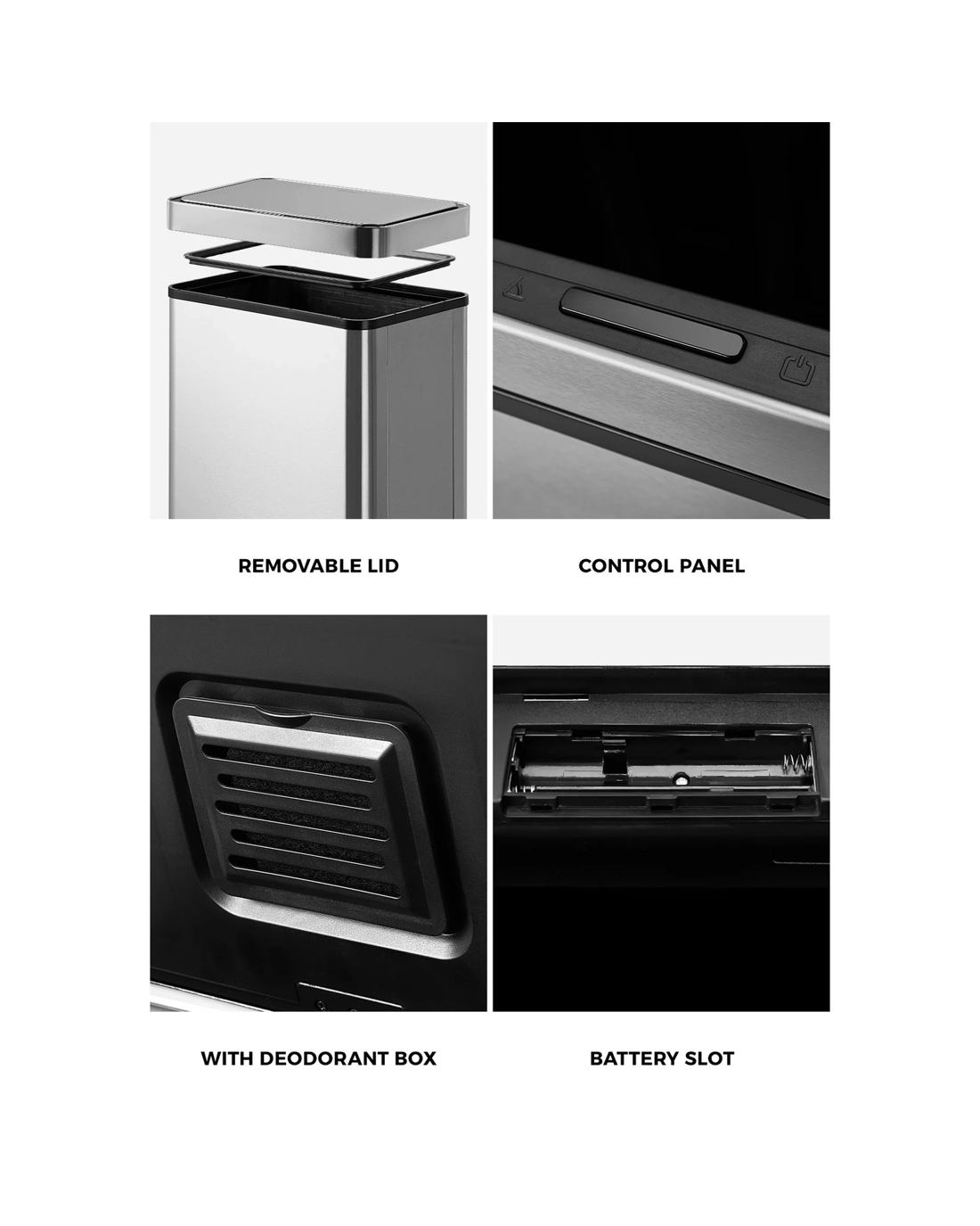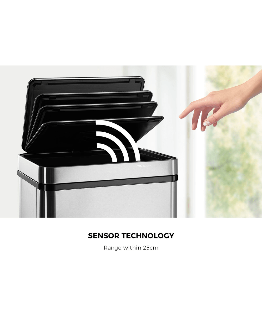 Constructed with stainless steel body and lid with finer-resistant surfaces, the hands-free motion sensor bin is designed to stand up to the rigours of kitchen use and yet relatively easy to clean and maintain.