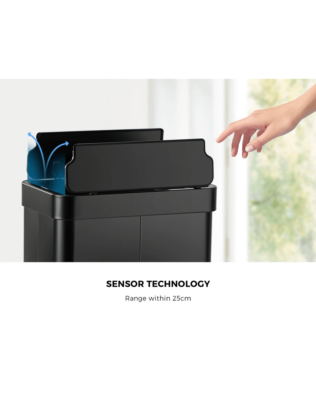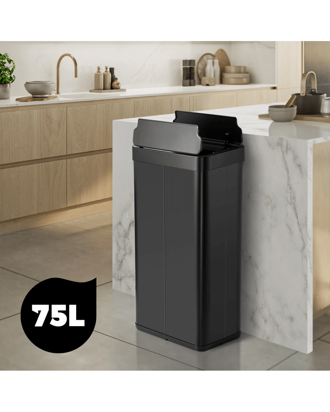 Sold by Kamprad's Oikos 1943Oikiture 75L Motion Sensor Rubbish Bin Stainless Steel - Black