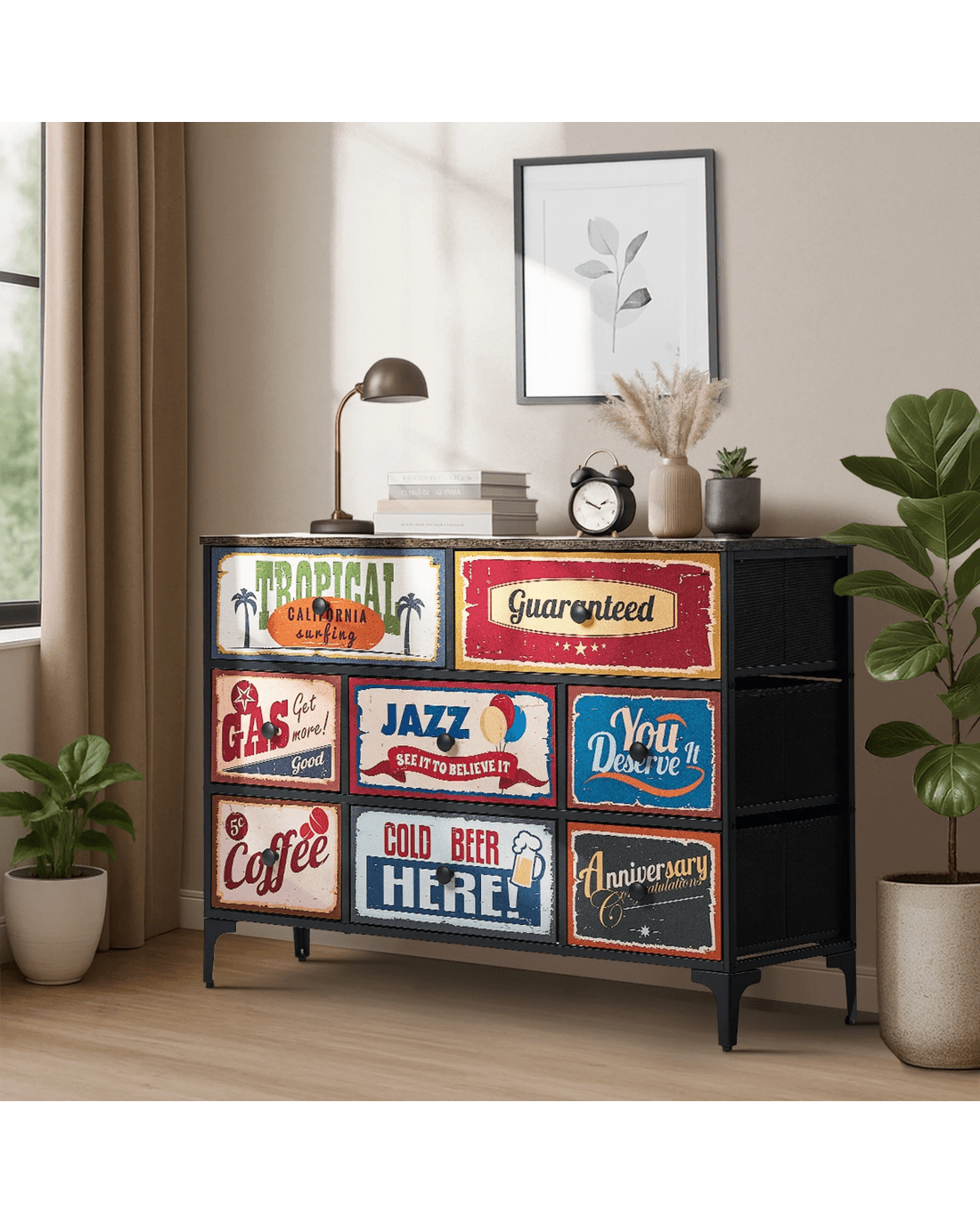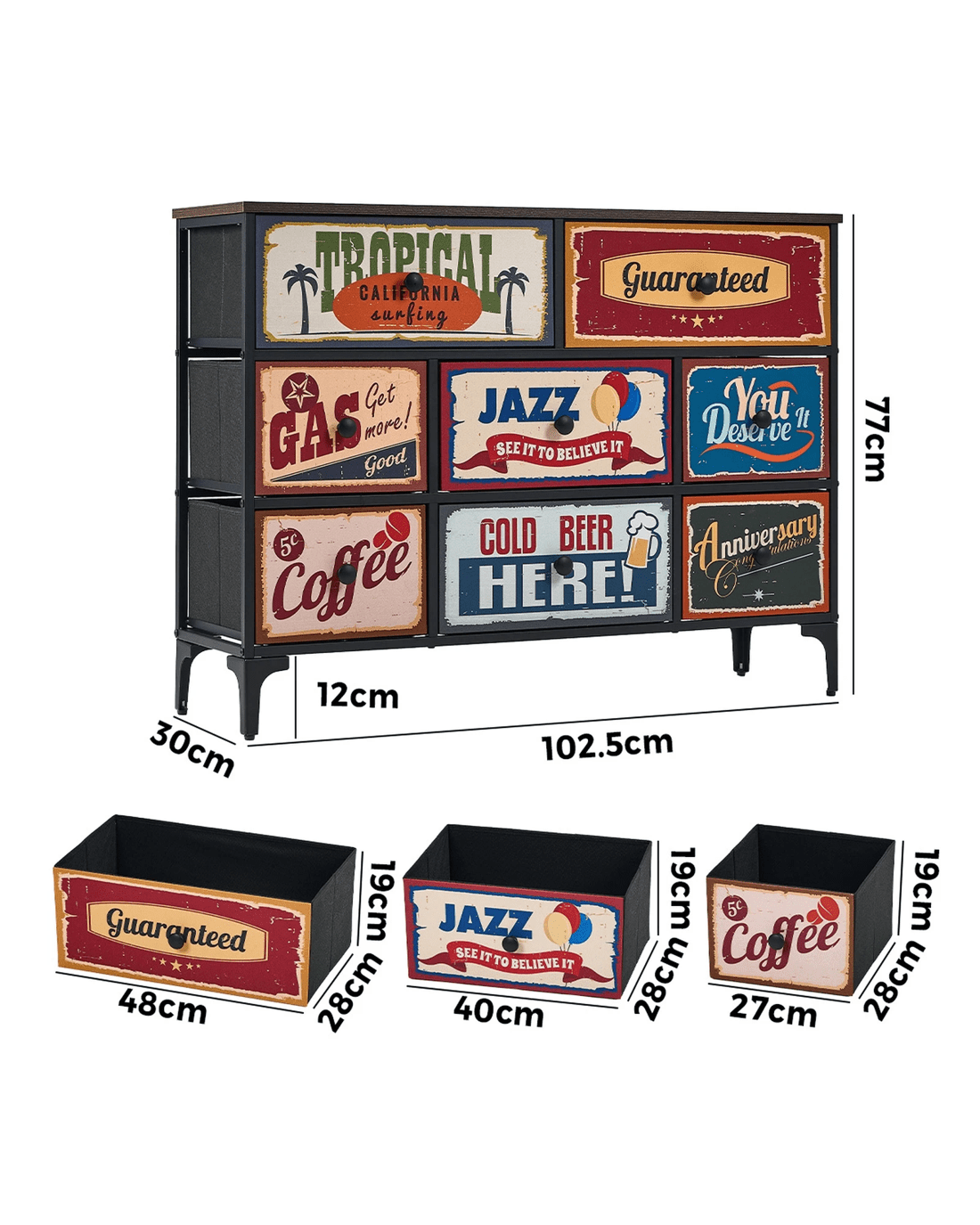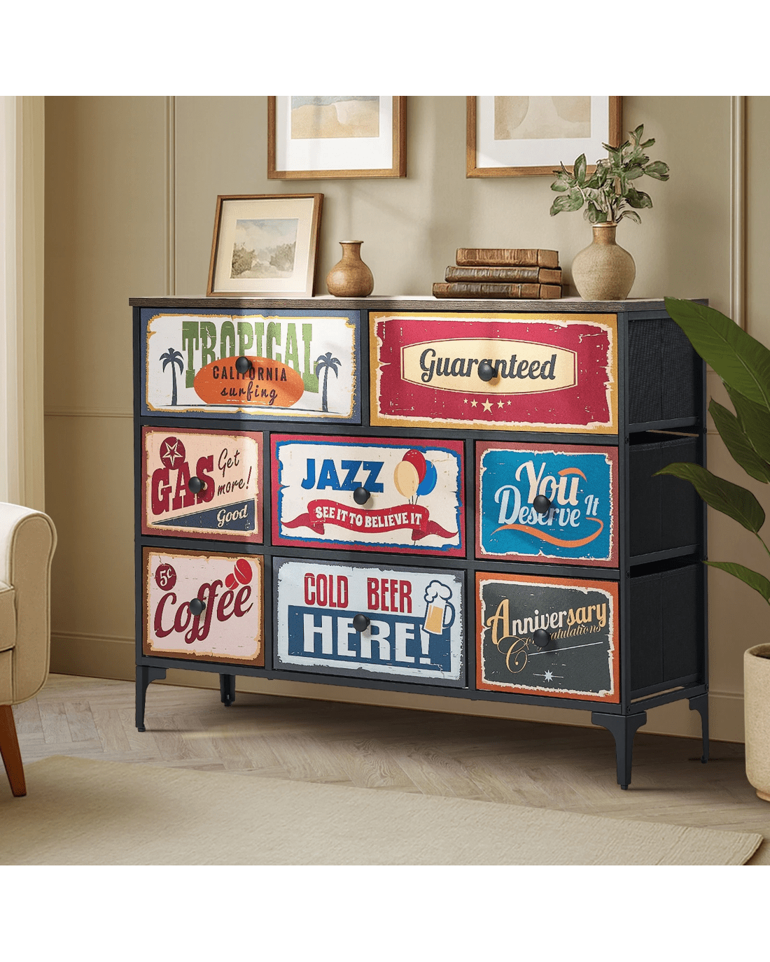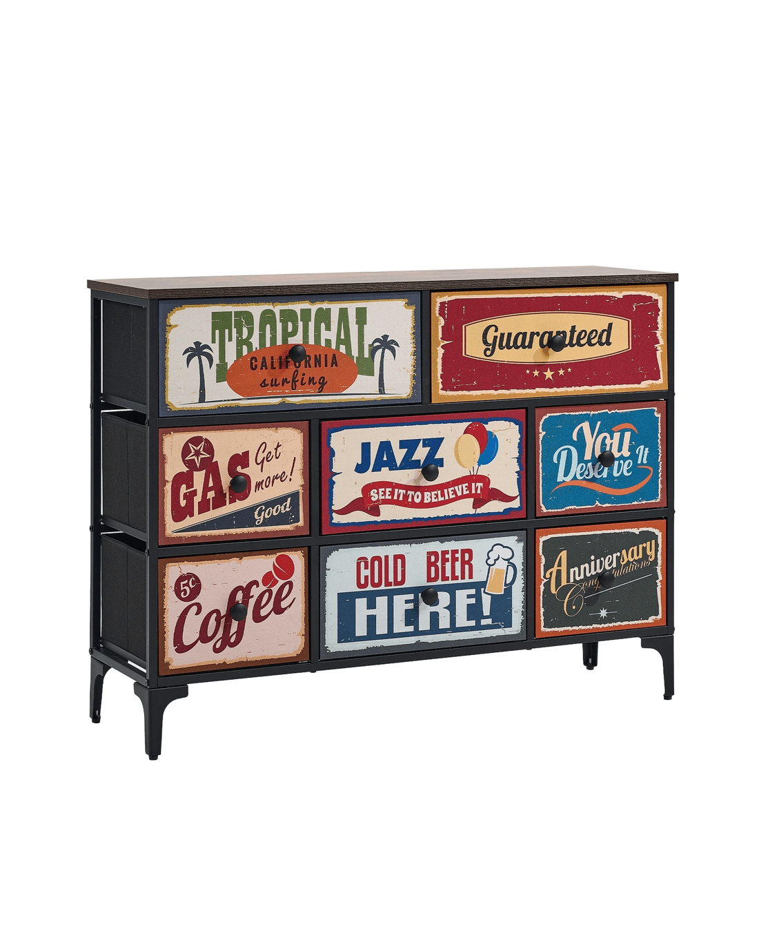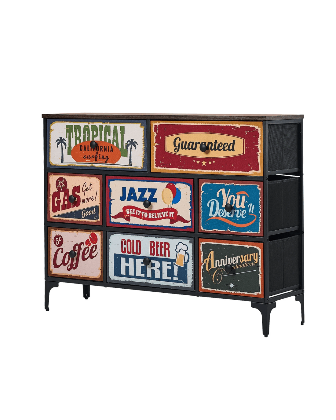 Oikiture 8 Chest of Drawers Fabric Storage Cabinet Retro Dresser Vintage Lowboy - Multi