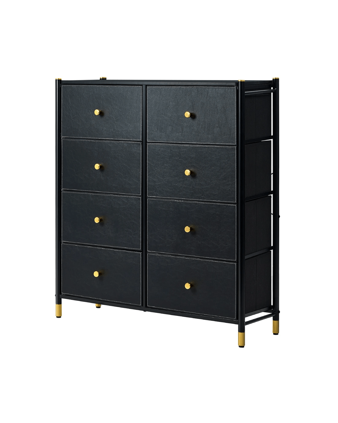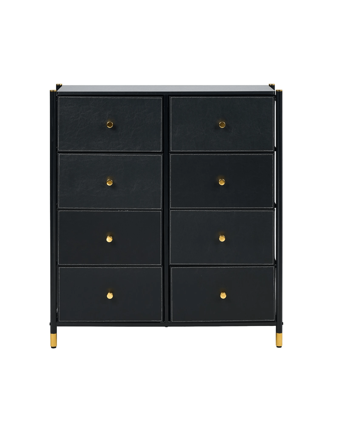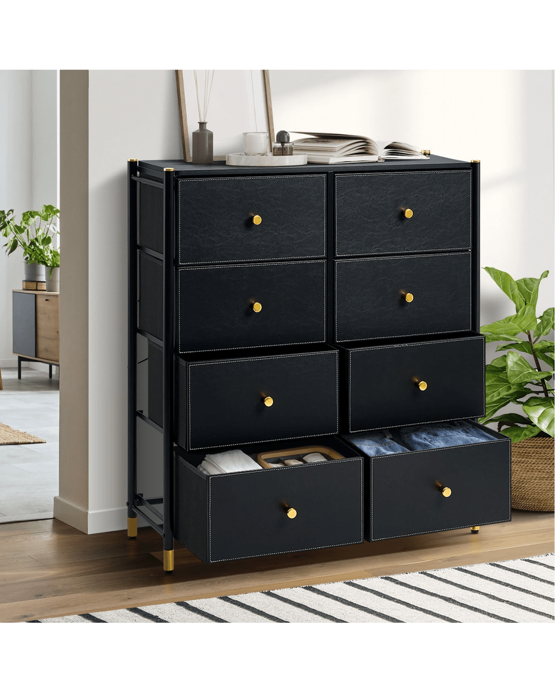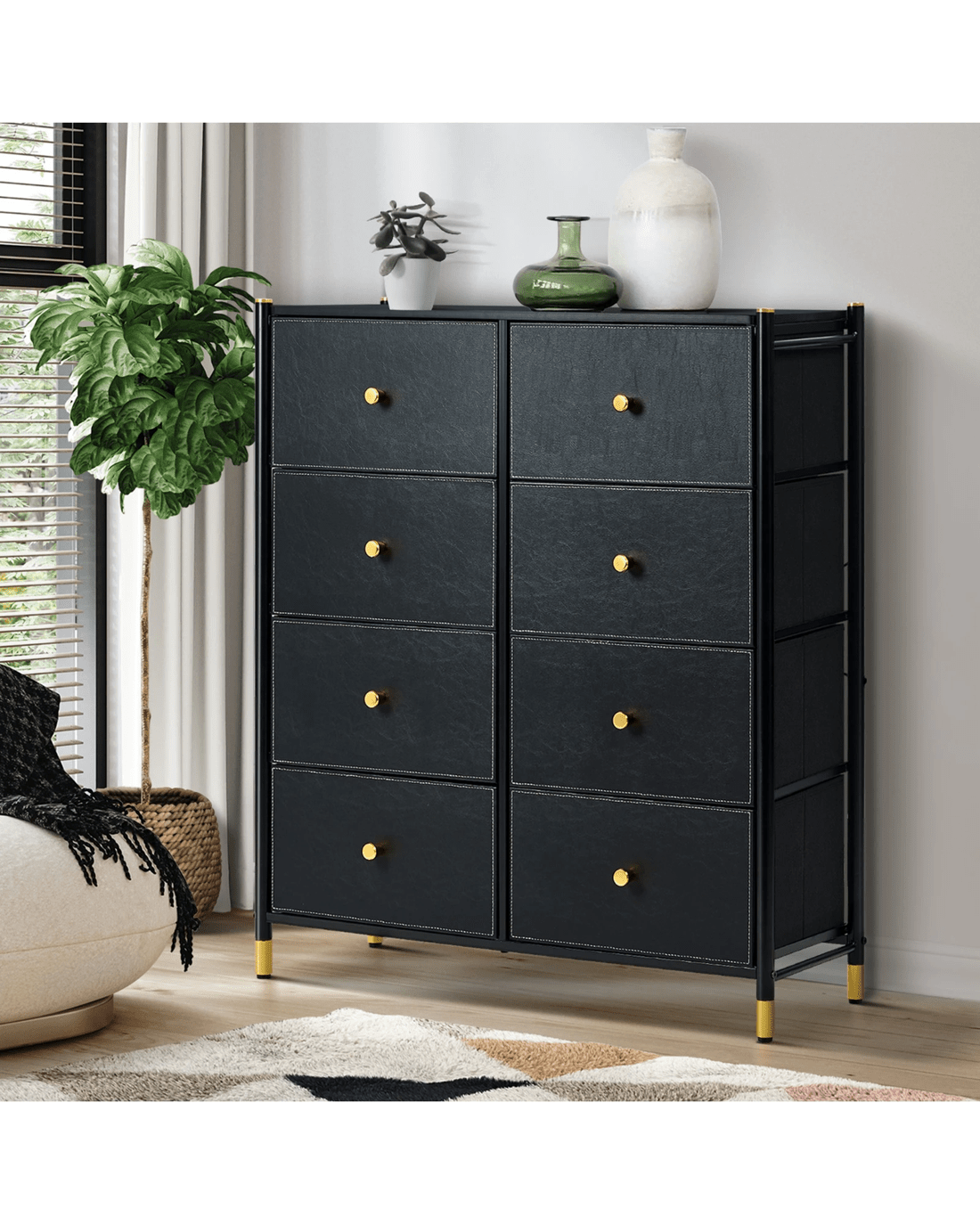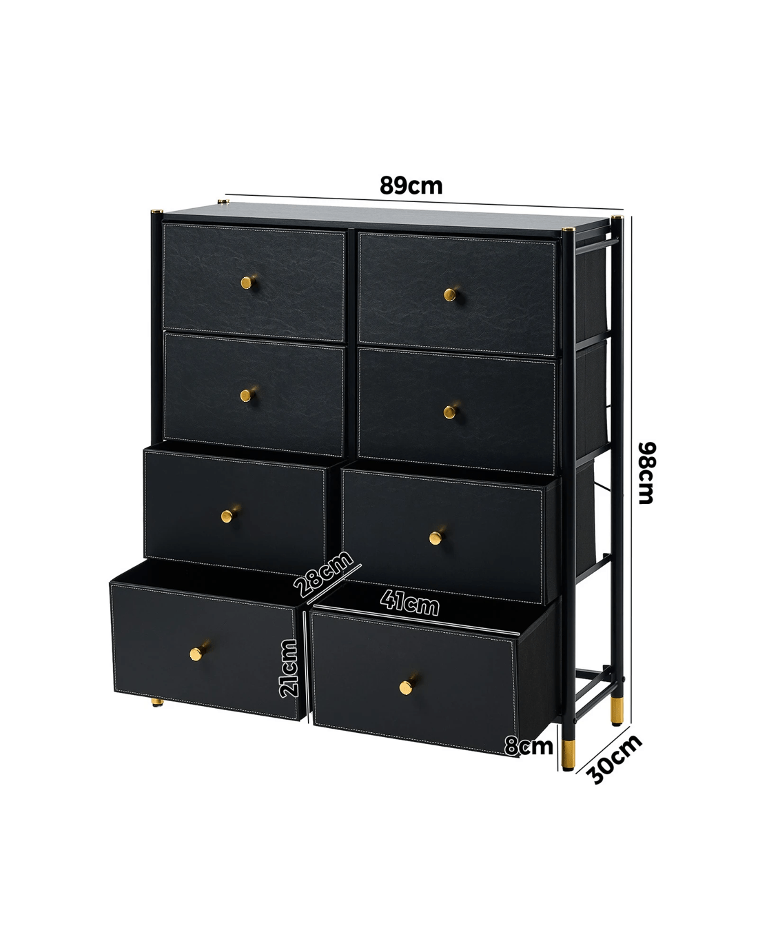 Oikiture 8 Chest of Drawers PU Fabric Storage Cabinet Dresser Tallboy - Black