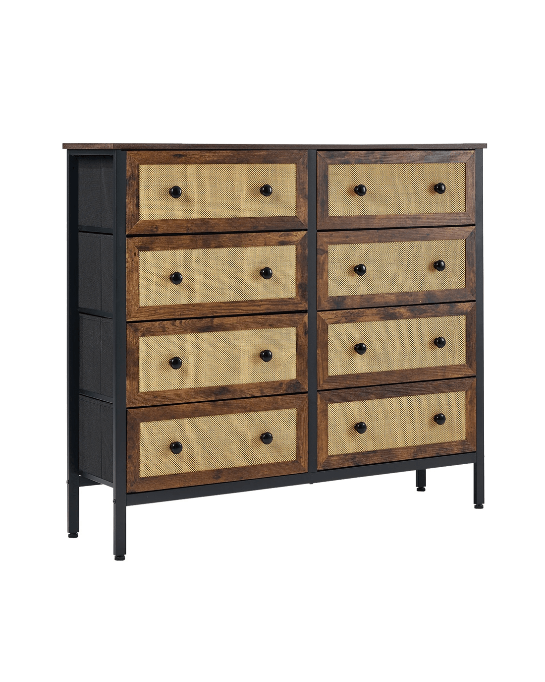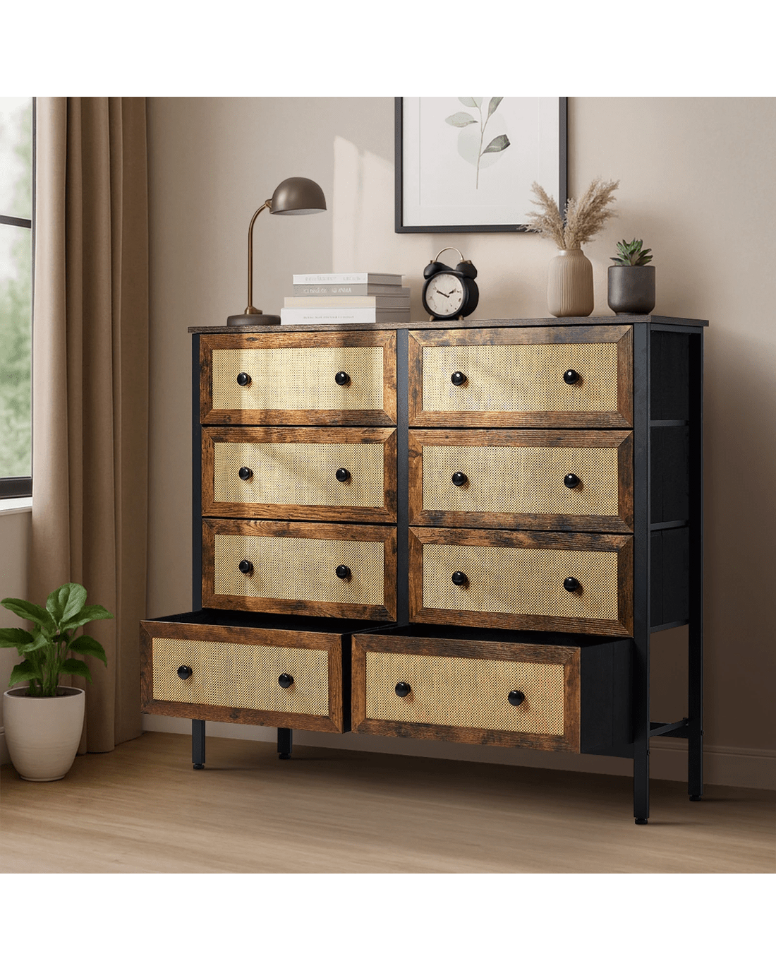 Oikiture 8 Chest of Drawers Storage Cabinet Rattan Fabric Dresser Tallboy - Multi