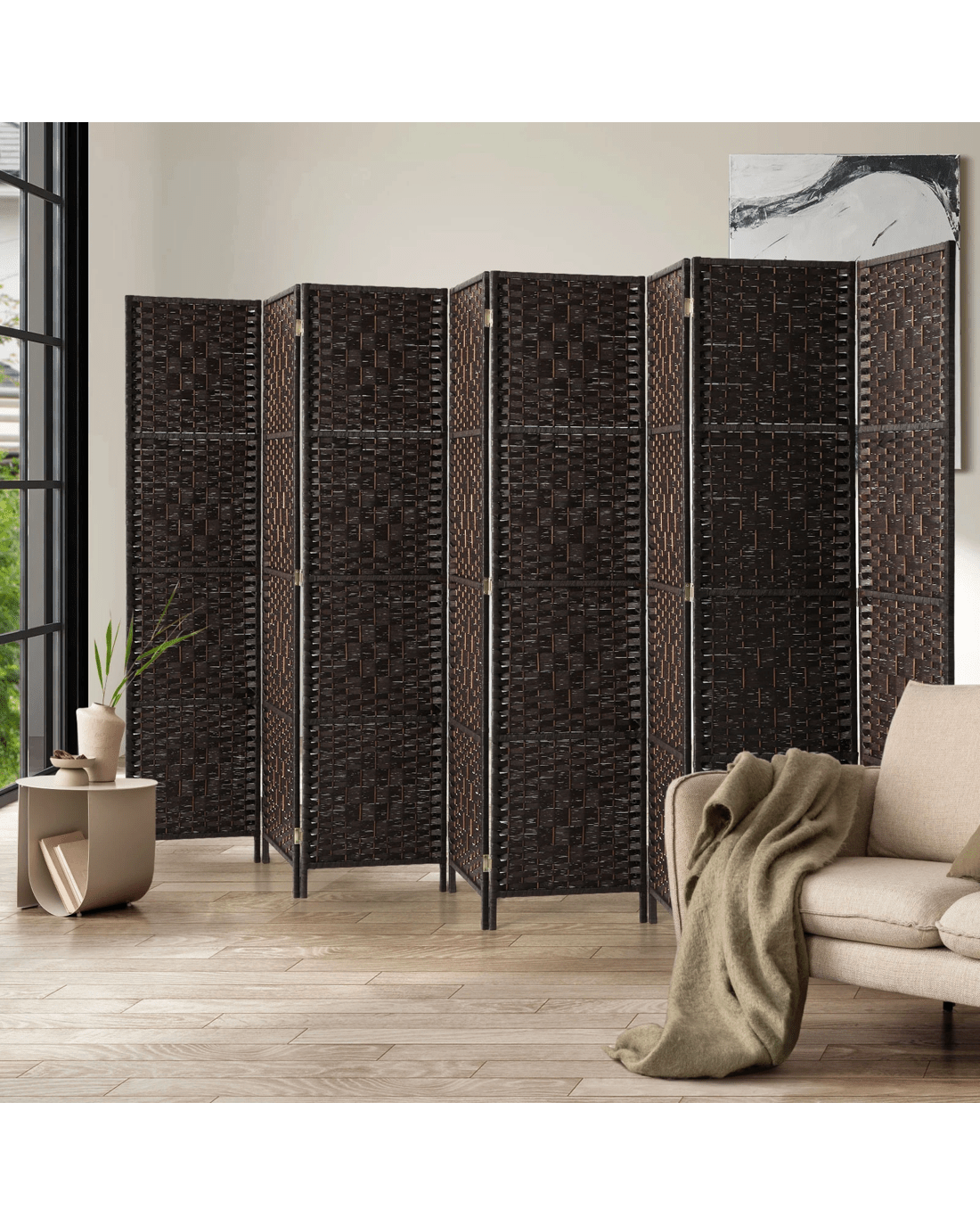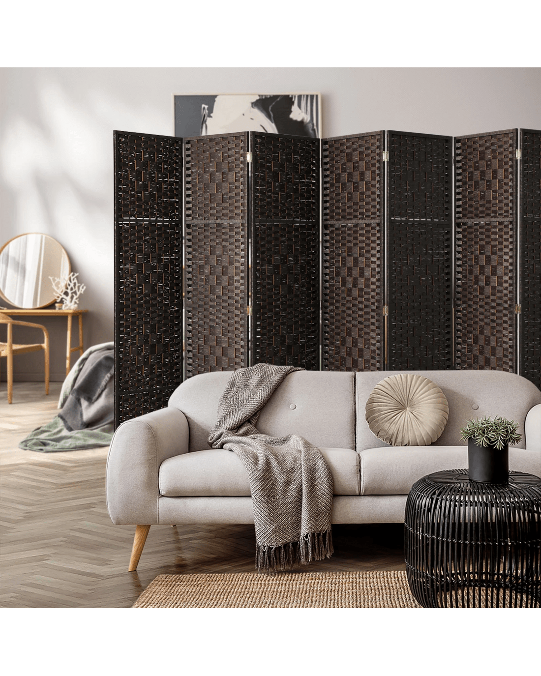 This is great as a privacy screen and also create a separation of spaces. The design of this room divider offers a good amount of privacy, with its tall design and stunning weaved rattan panels that also allows natural light to shine through.