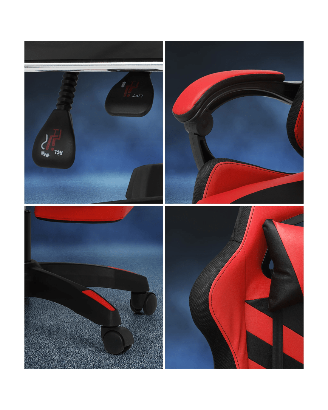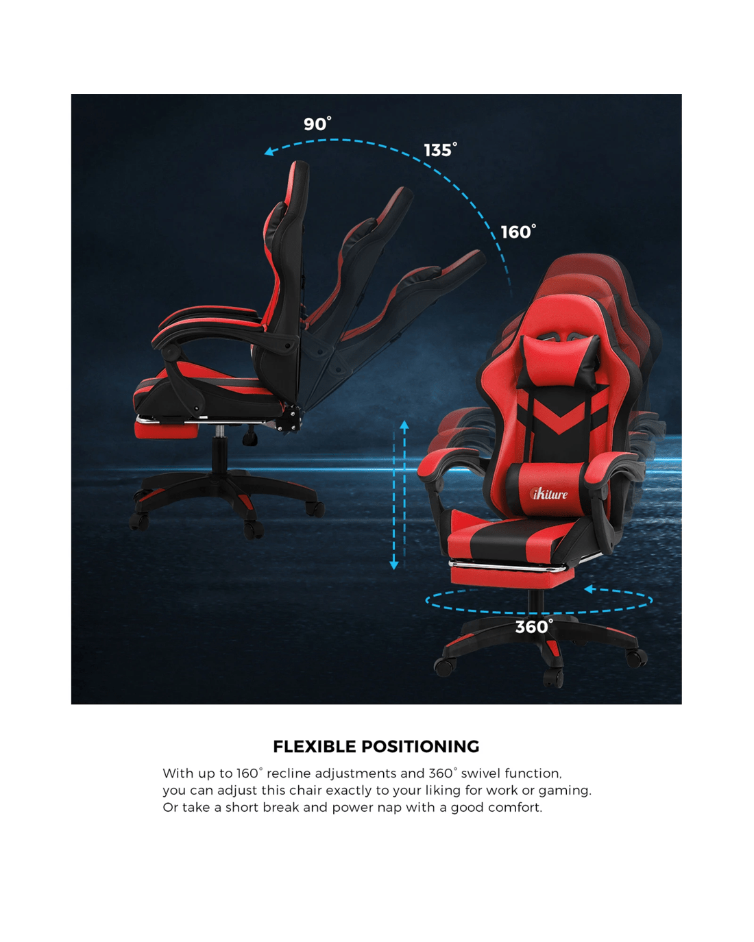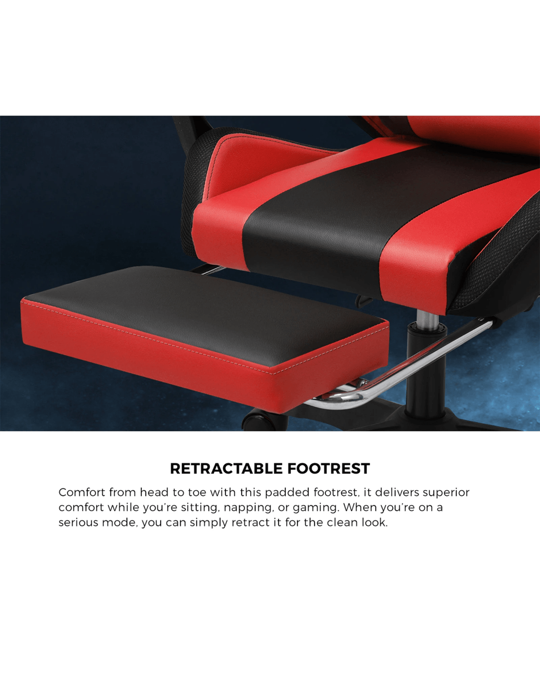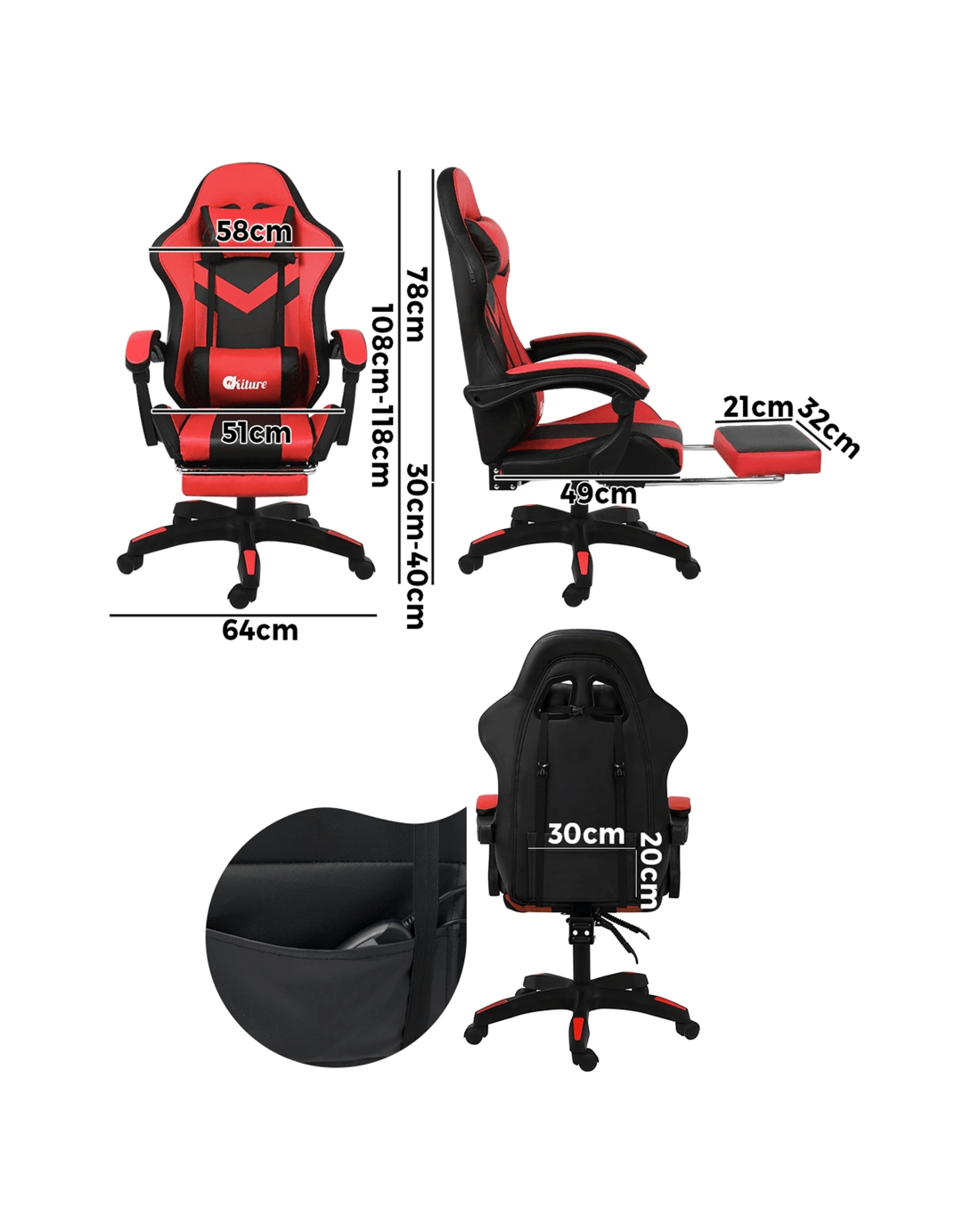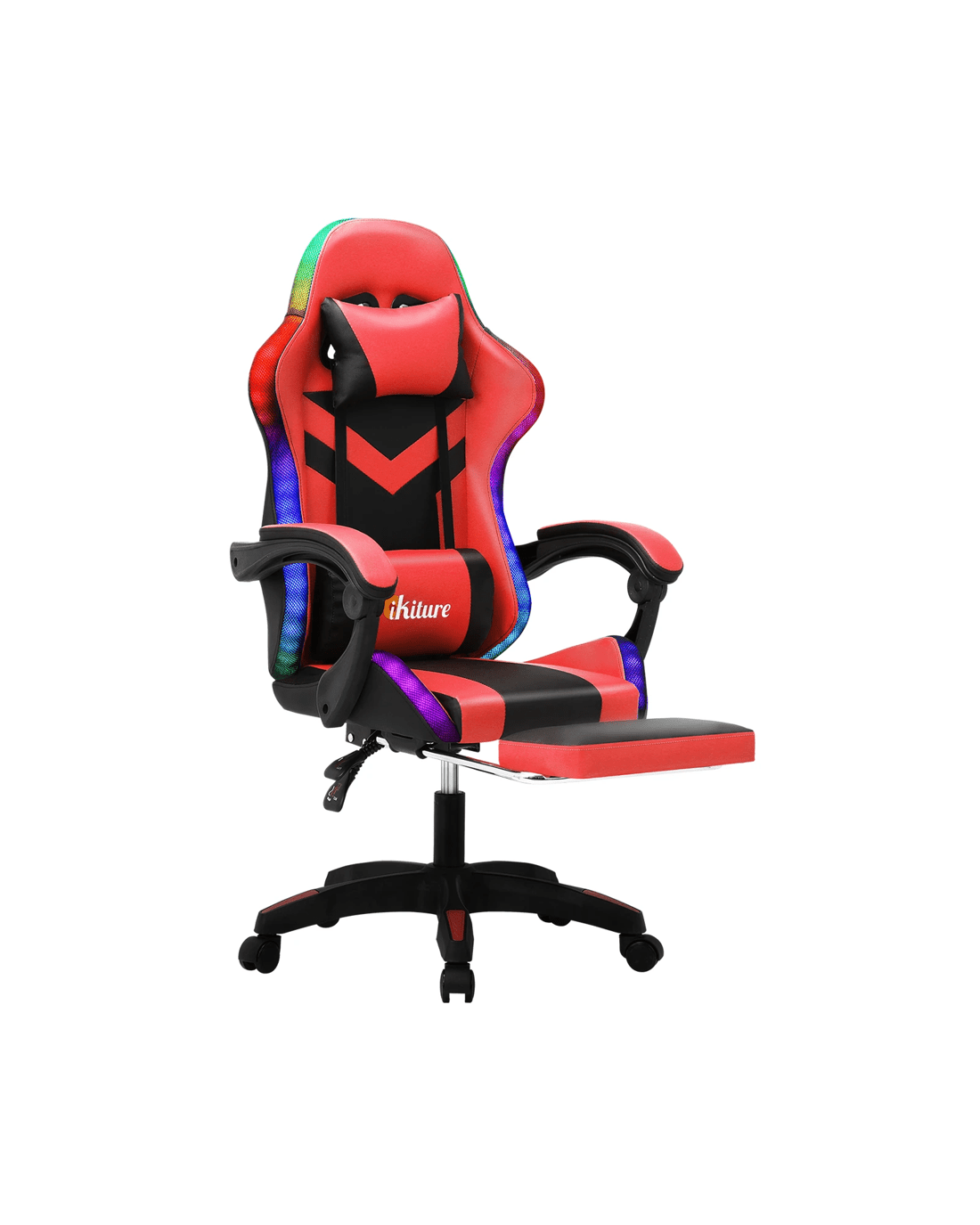If you're into gaming or the gaming chair look, then this Oikiture LED Gaming Chair is right up your alley. Designed to create the perfect sitting positioning for play or work, our gaming chair is not short on creature comforts. Such as the plush leather seating, versatile adjustments, retractable footrest, smooth movements with omnidirectional castor wheels and certified quality components.