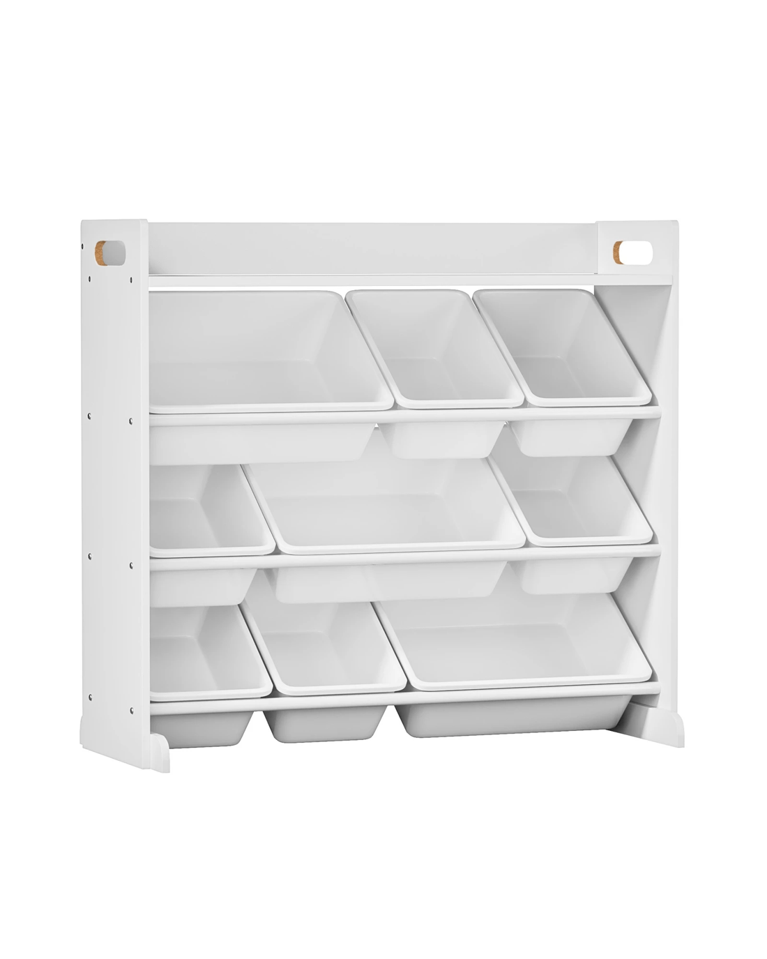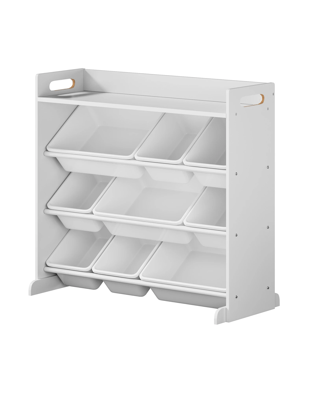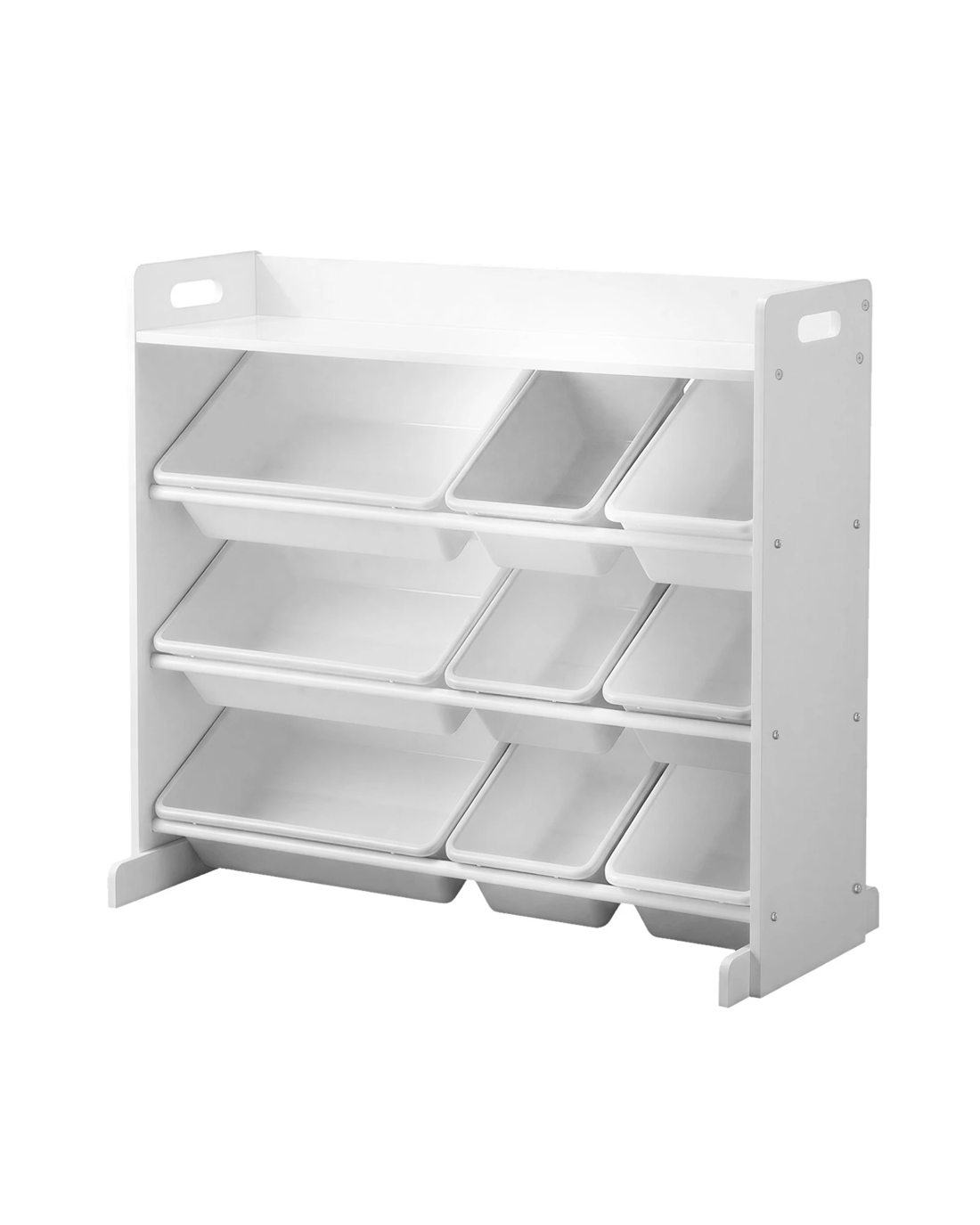 Comprising an array of 9 storage bins with two different sizing the 4-tier storage organiser lets you store an assortment of items, ranging from toys to books to games. Large or small, the storage bins can be easily labelled and assigned for convenient keeping and retrieval. And if desired, the bins can be removed and brought to any location and returned to their original placement later. Better still, you can arrange the large and small bins on the 4-tier rack in any way that fits your fancy. And more display space is found at the top with raise surrounds to ensure things do not go missing down the back. Plus, the fact that the entire ensemble is built to kid-friendly specifications with smooth edges and the use of eco-friendly materials make this storage organiser even more reassuring and safer for use.