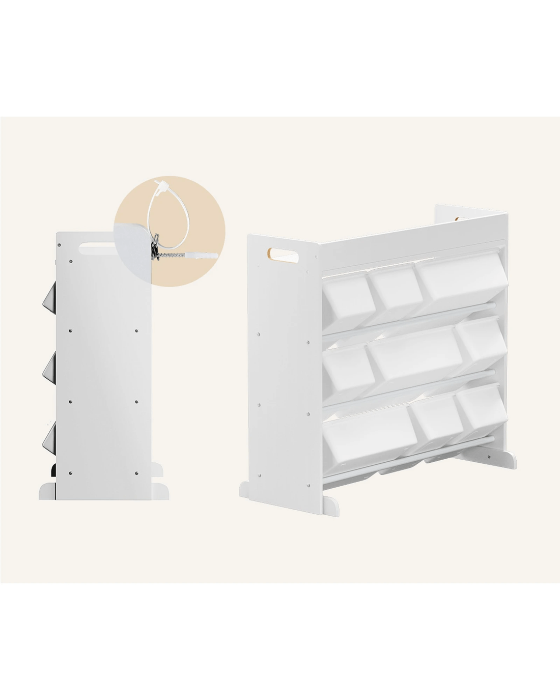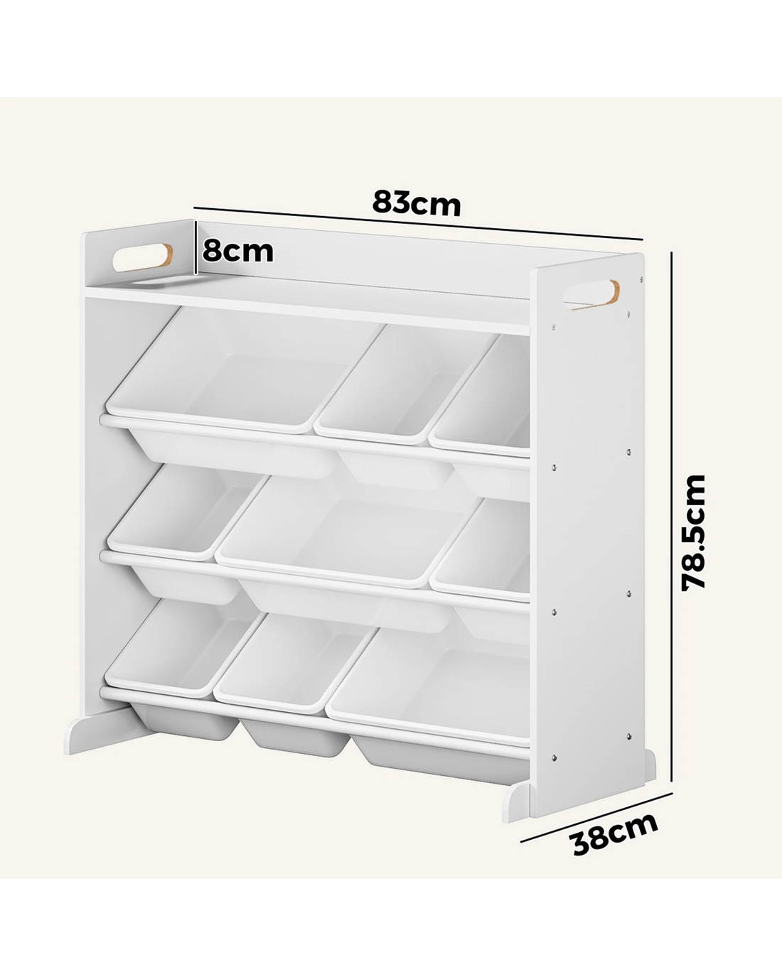 Not least, its pleasant wood, plastic and metal combination design and meticulous finishing also enable hassle-free cleaning and maintenance for long-lasting use. And don't just stop at one. Get two or more of this useful kids storage organiser for multifunctional storage in specific locations, or even to act as versatile space dividers that will really blend well with any kid's room decor.