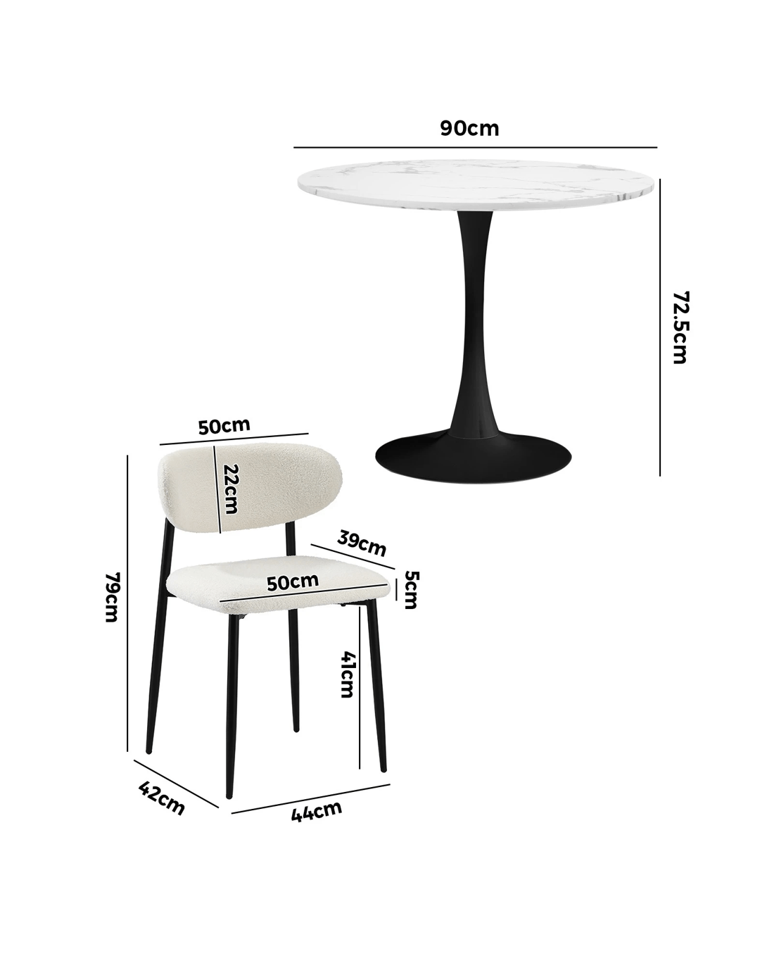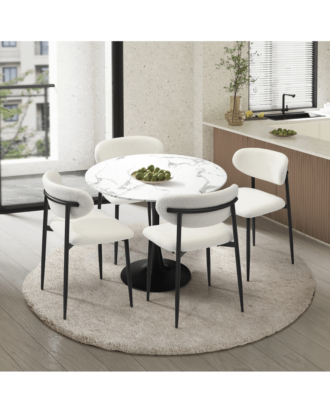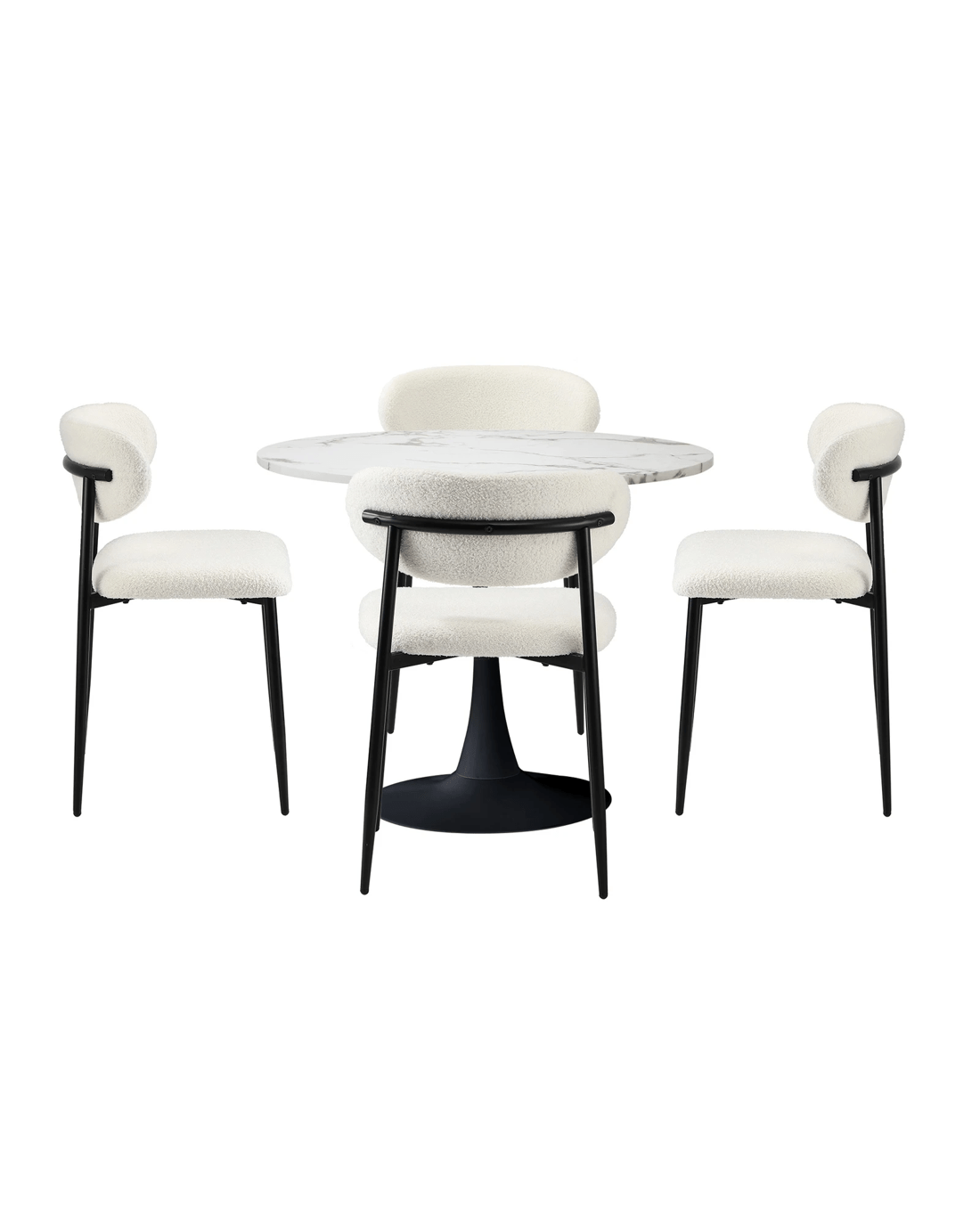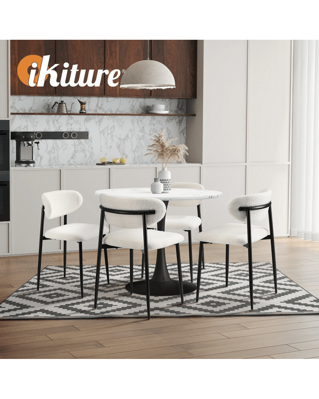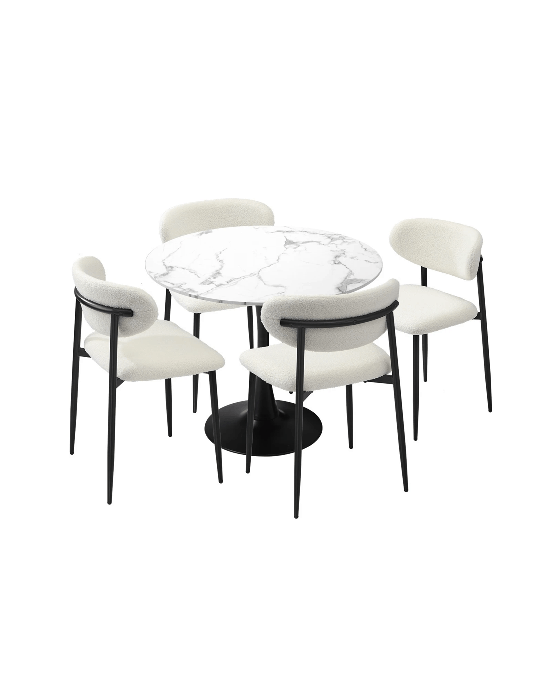 Sold by Kamprad's Oikos 1943Oikiture 90cm Round Dining Table with 4x Dining Chairs Boucle - Multi