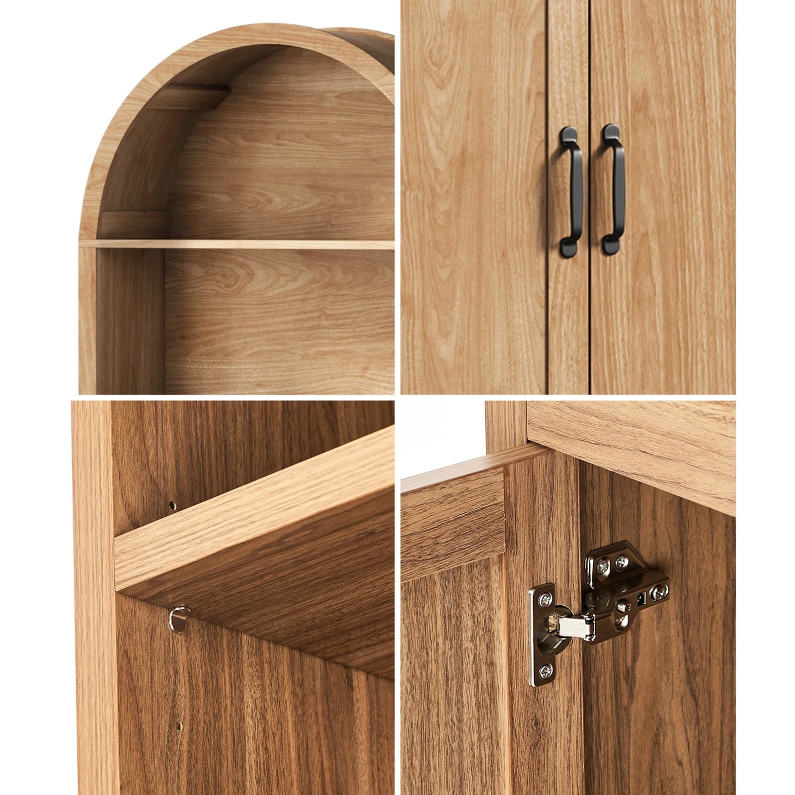 Oikiture Arched Bookshelf Display Shelf Bookcase Bookshelves Storage Cabinet - natural