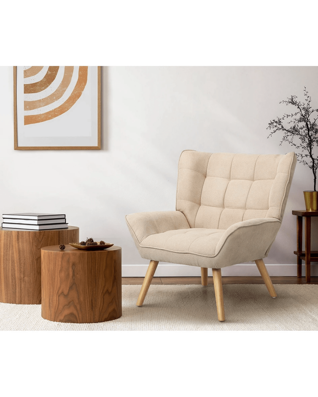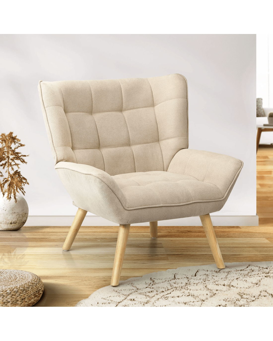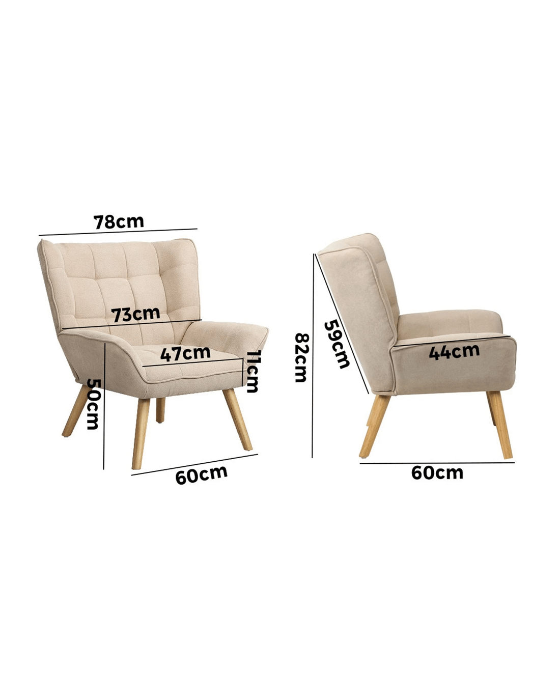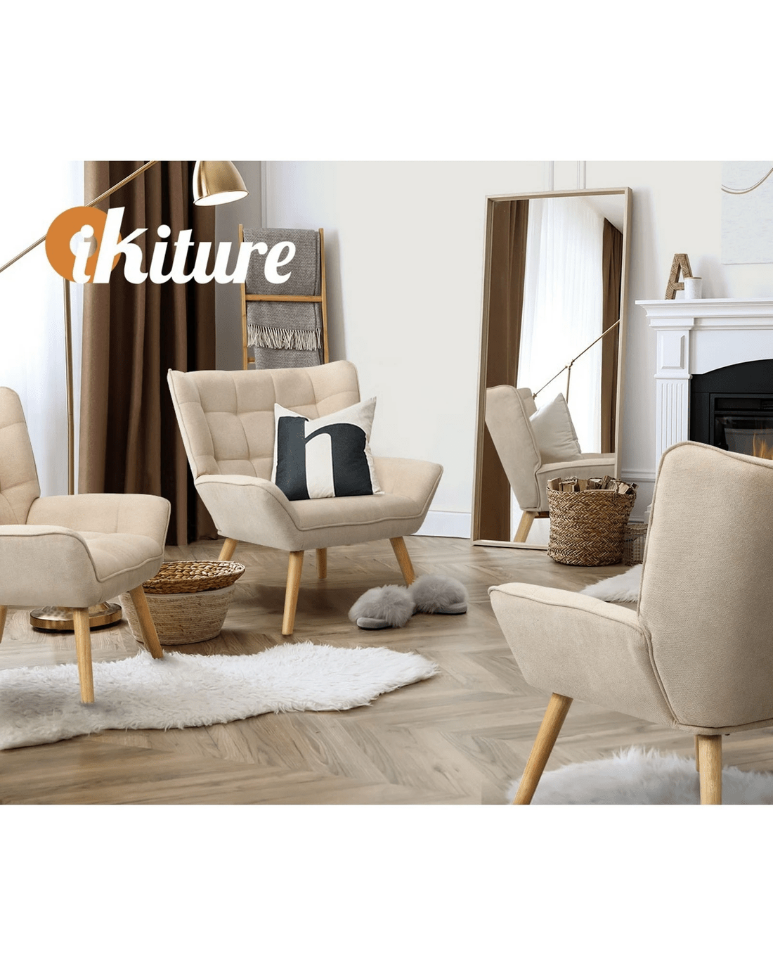 Sold by Kamprad's Oikos 1943Oikiture Armchair Accent Chairs Sofa Lounge Fabric Upholstered Tub Chair - Beige