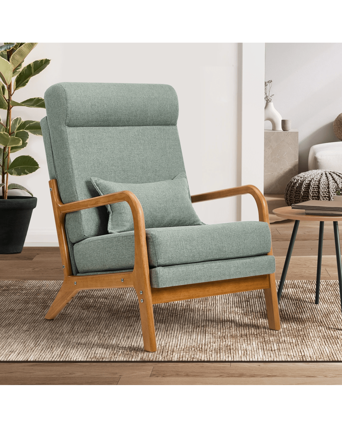 Oikiture Armchair Linen Fabric Lounge Chair with Lumbar Pillow - Green