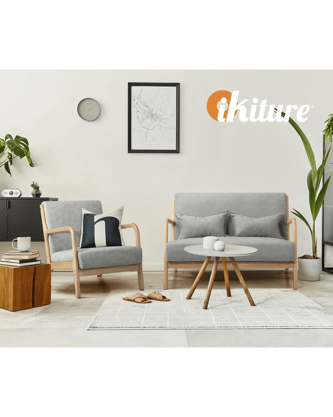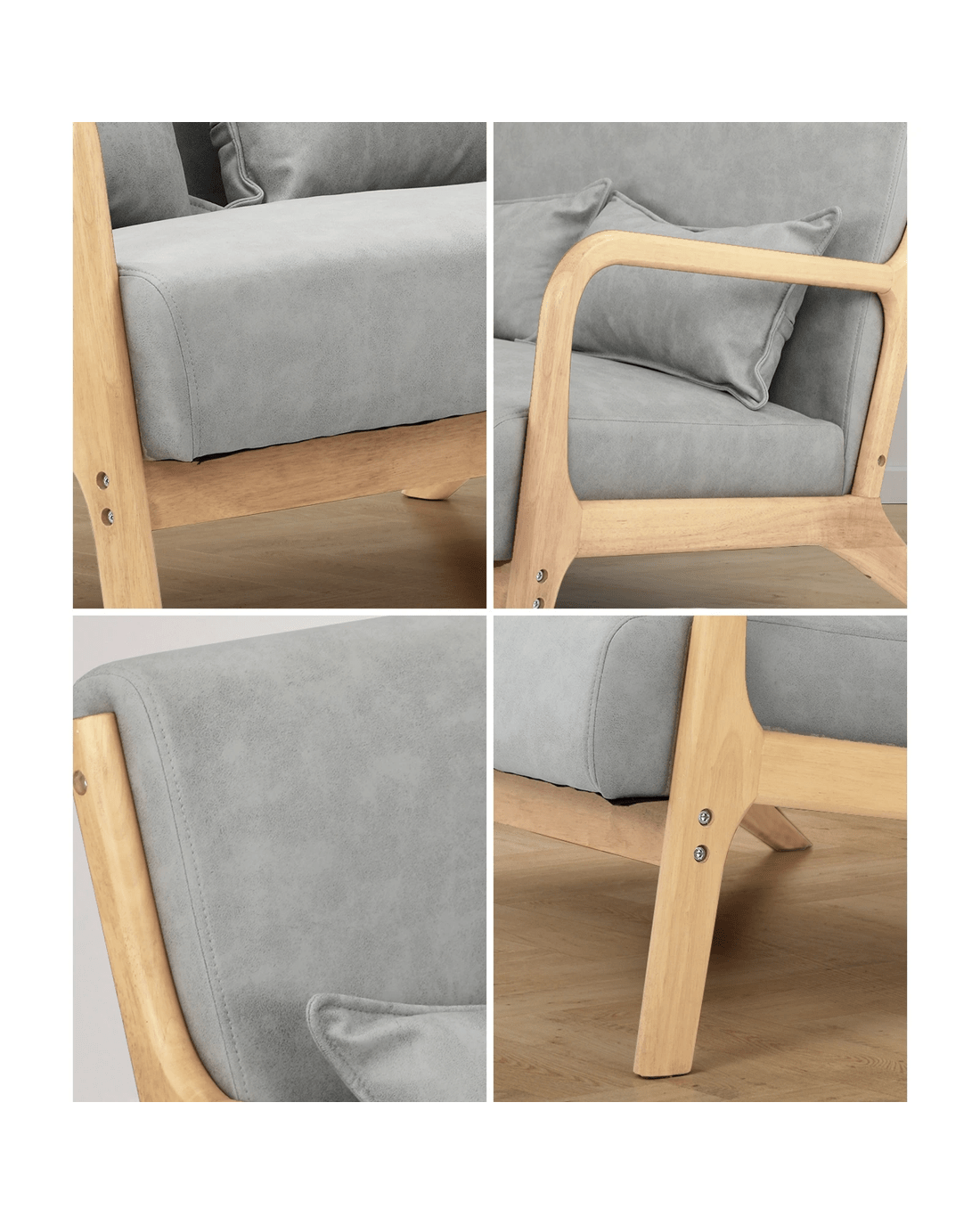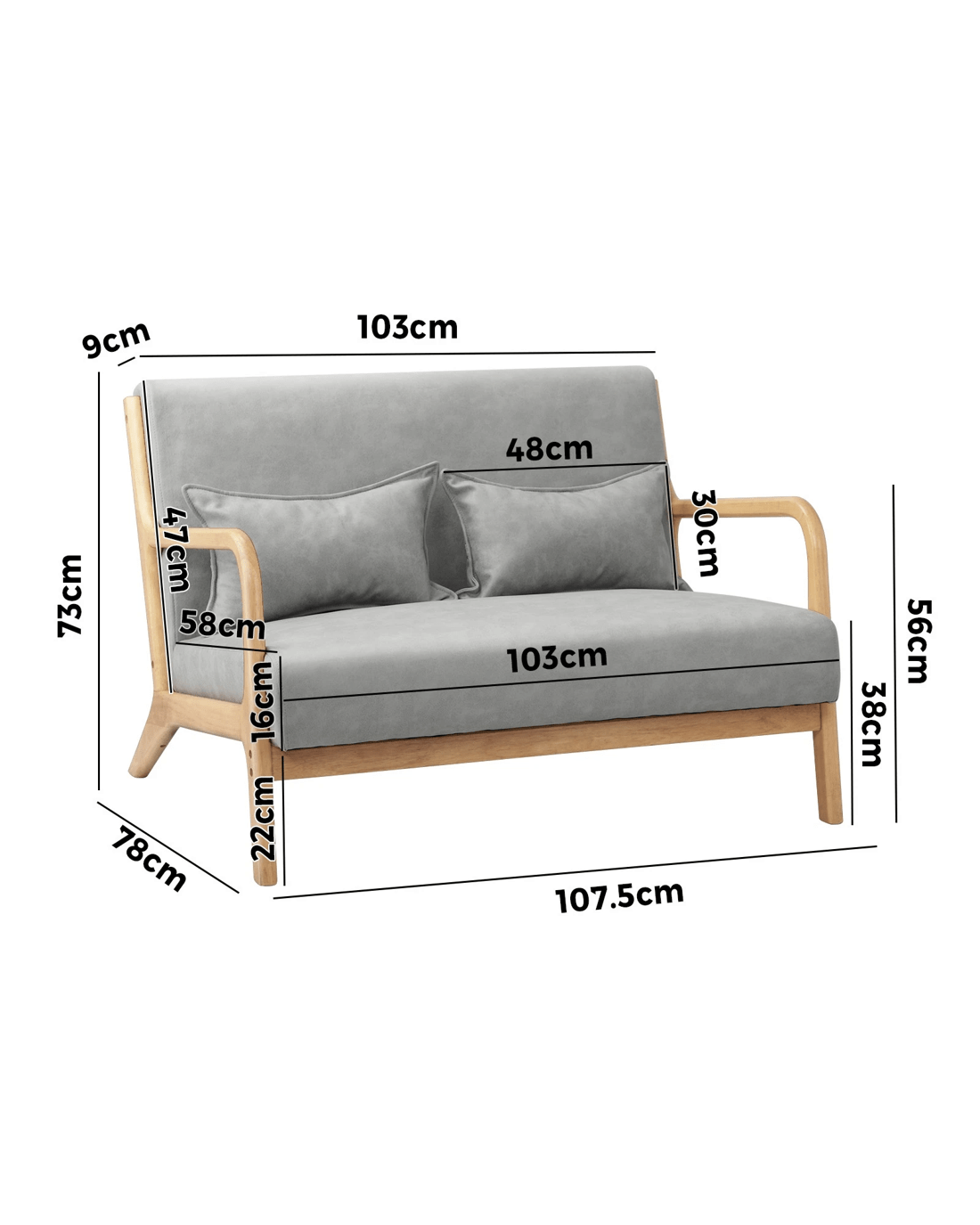Oikiture Armchair Lounge Chair 2 Seater Accent Couch Sofa Fabric Pillows - Grey