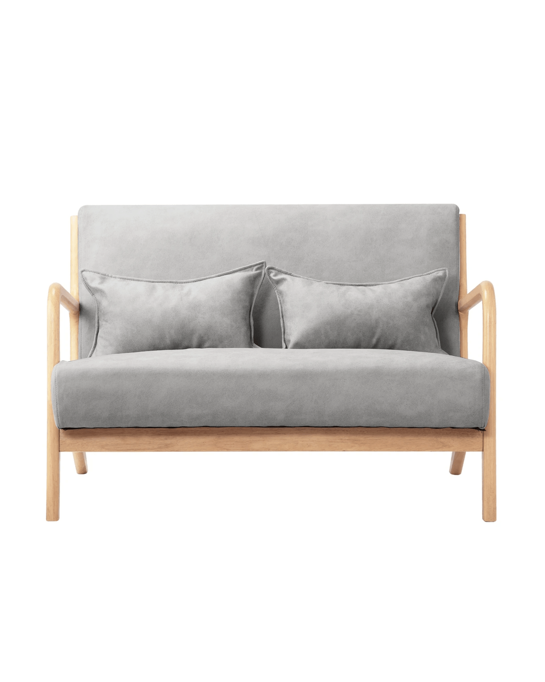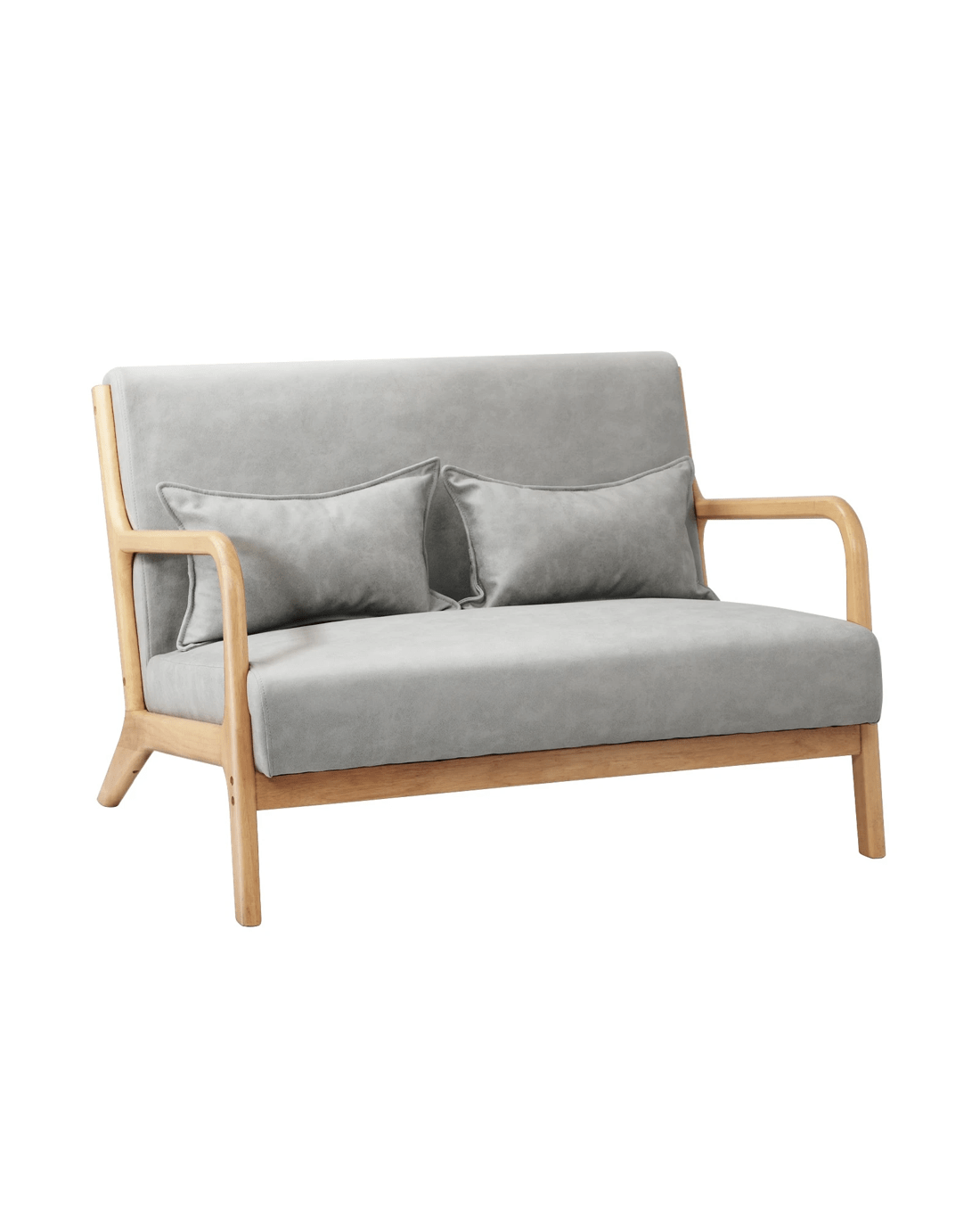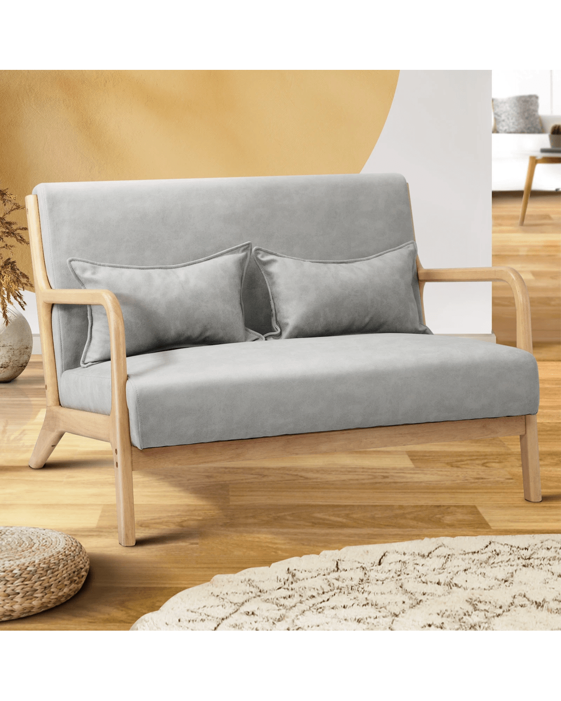 Oikiture Armchair Lounge Chair 2 Seater Accent Couch Sofa Fabric Pillows - Grey
