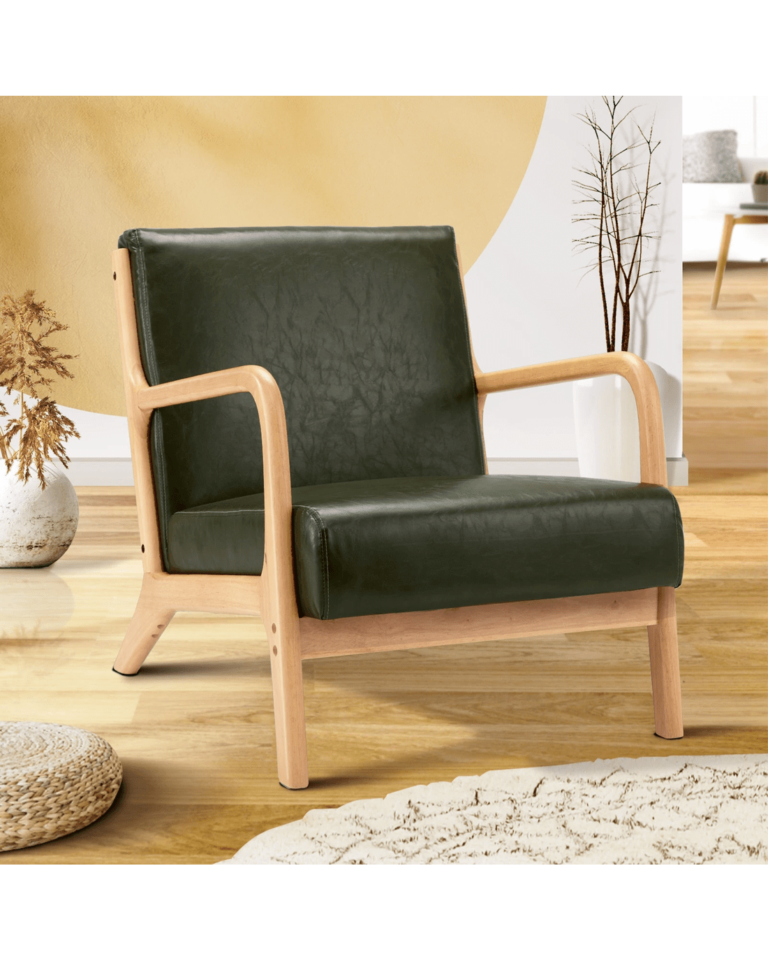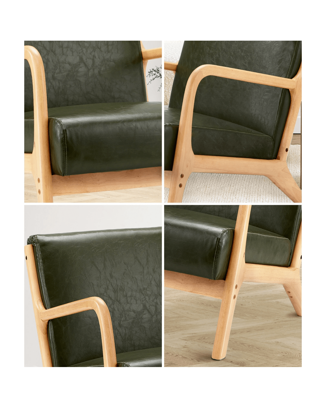 Oikiture Armchair Lounge Chair Accent Armchairs Couches Sofa Wood Pu - Green