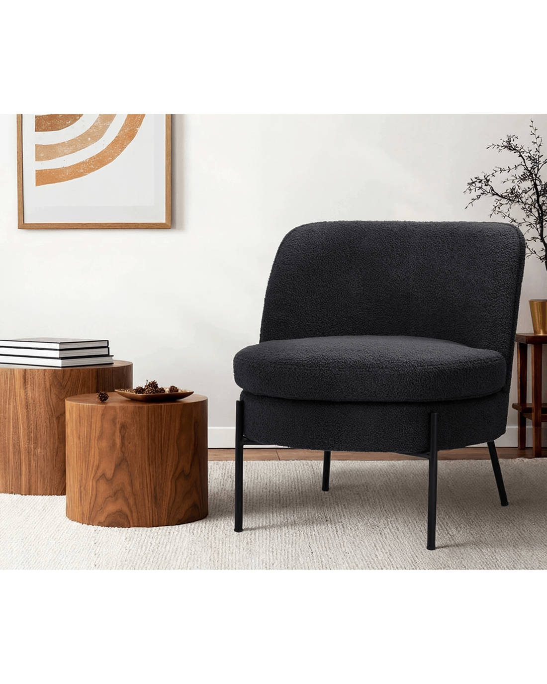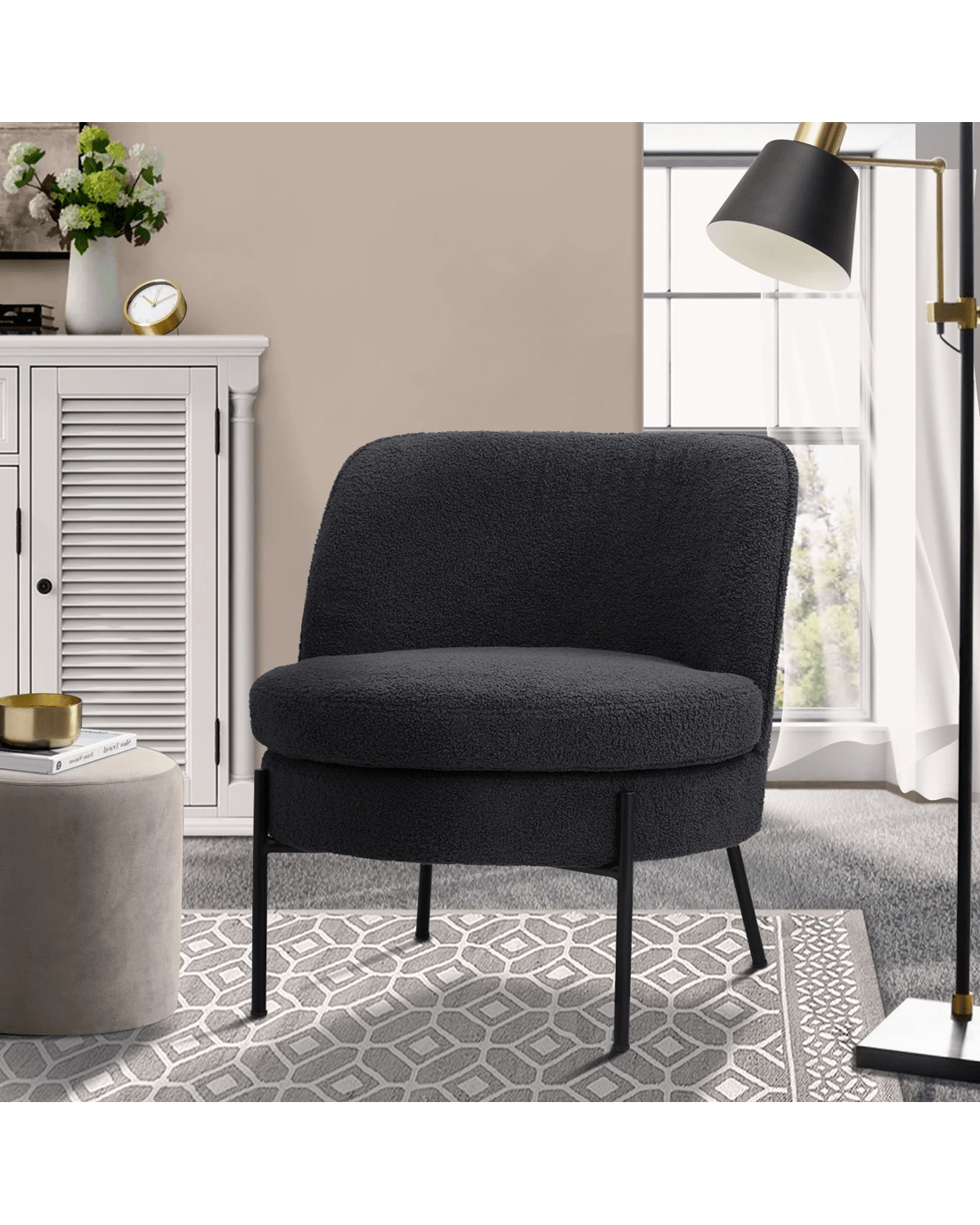Oikiture Armchair Lounge Chair Accent Couch Chairs Padded Sofa Boucle - Charcoal