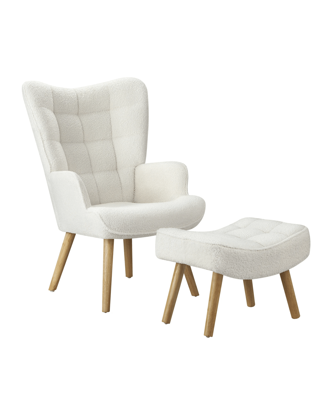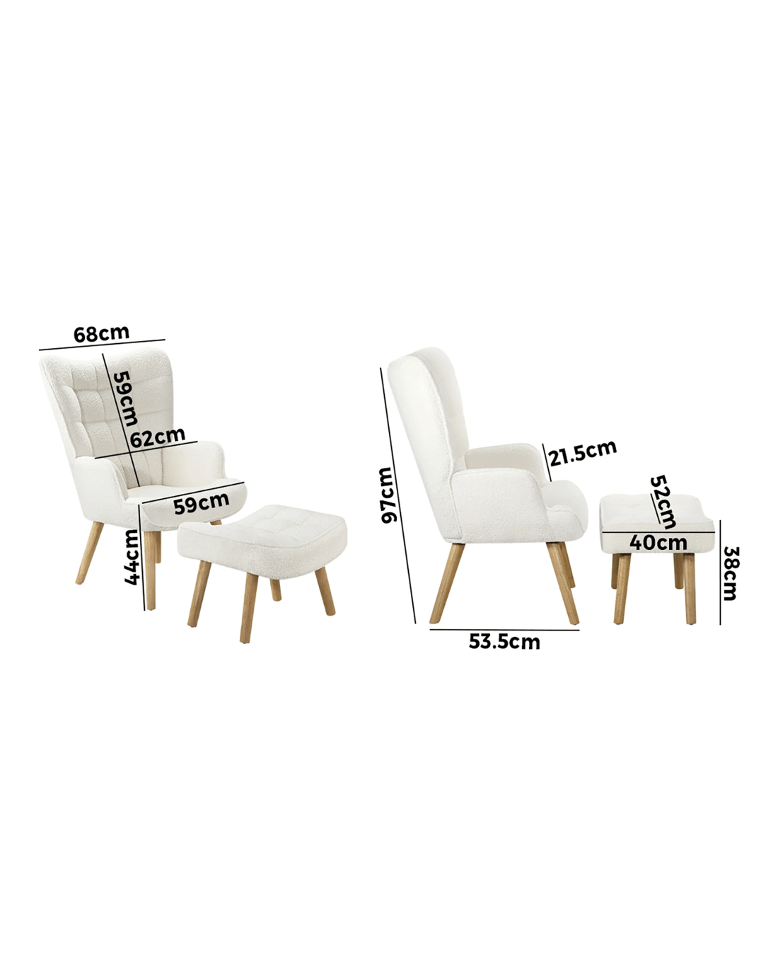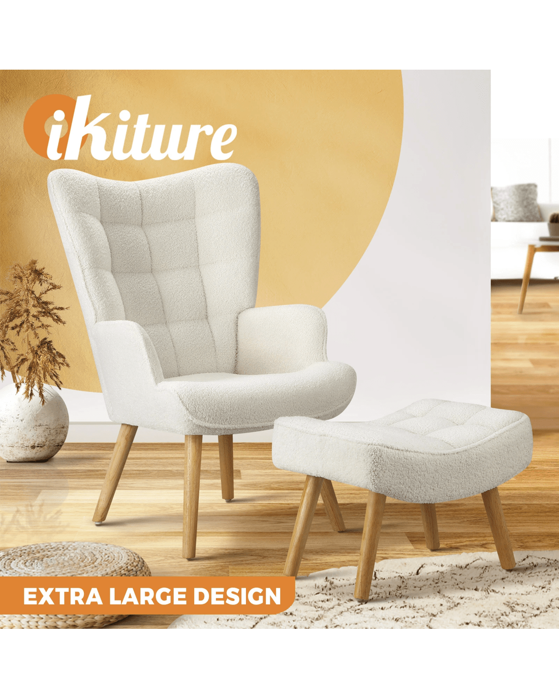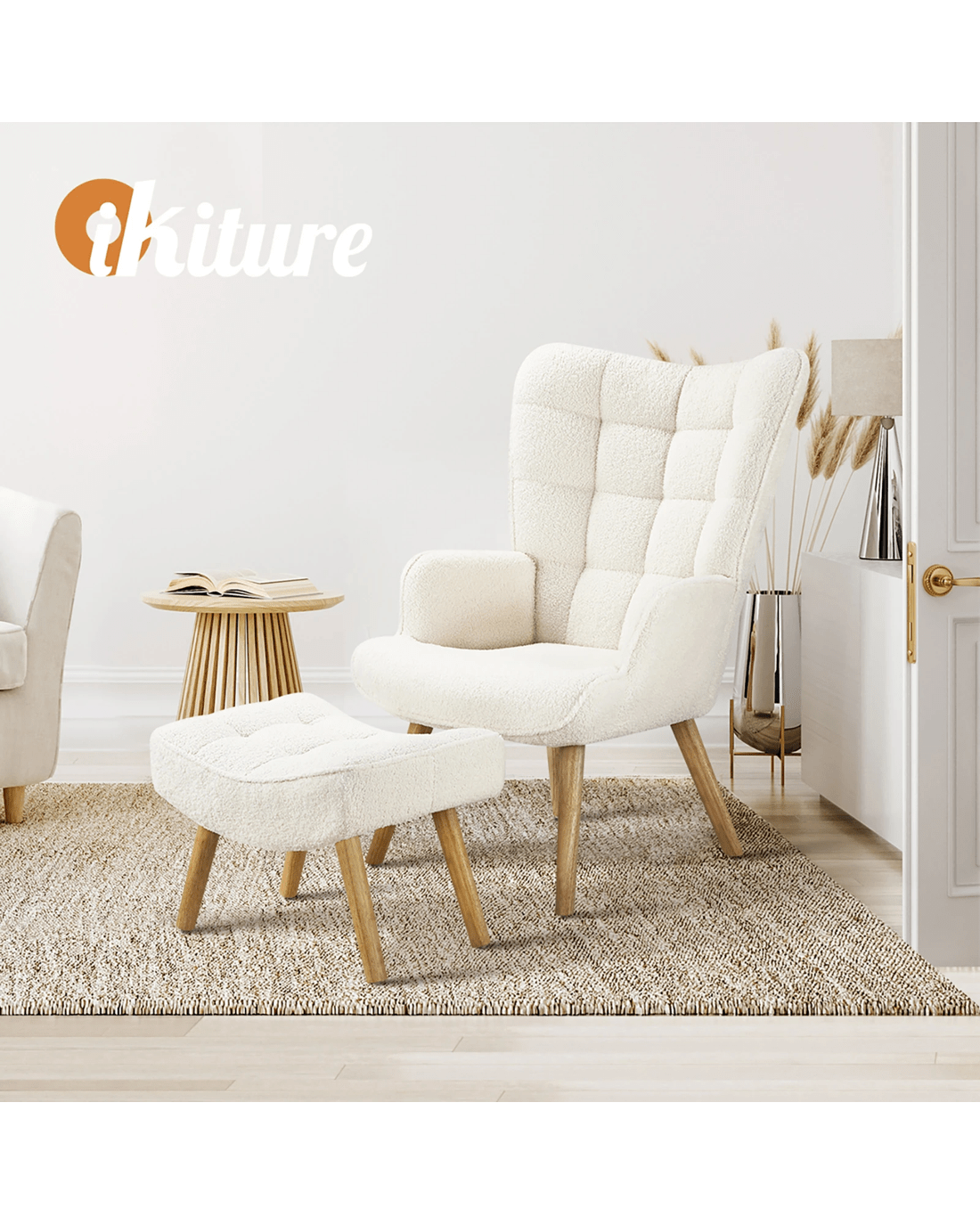 Oikiture Armchair Lounge Chair Ottoman Accent Armchairs Sherpa Sofa Chairs - White