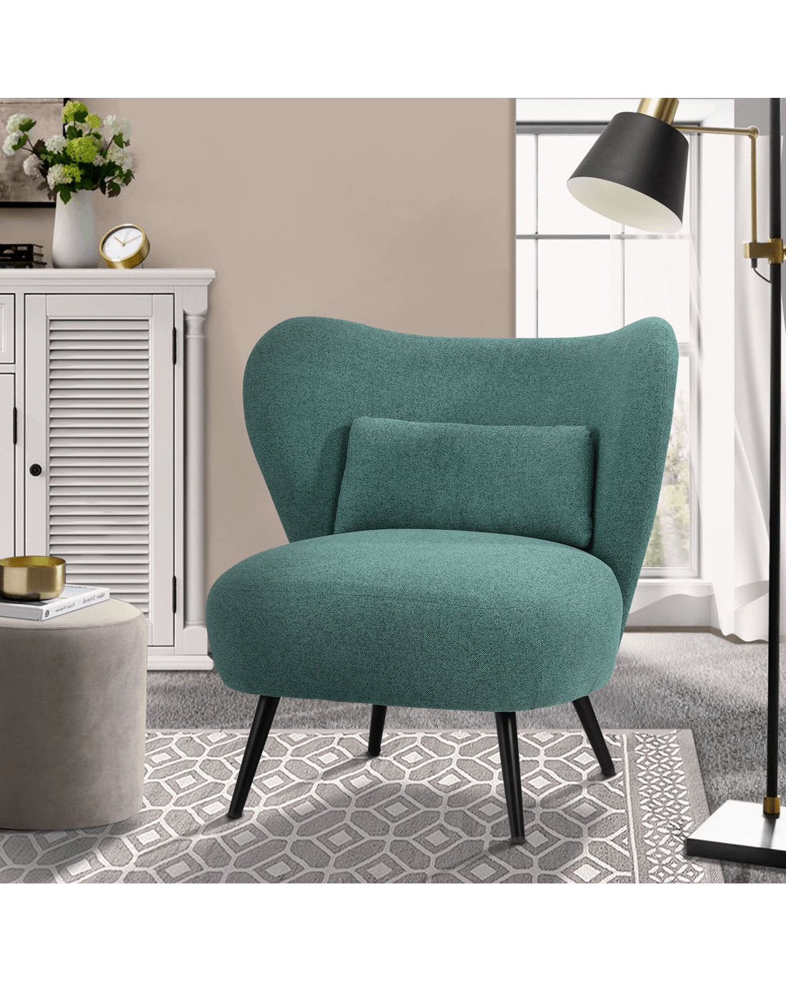 Oikiture Armchair Lounge Chair With Lumbar Pillow Wingback Polyester Linen - Green