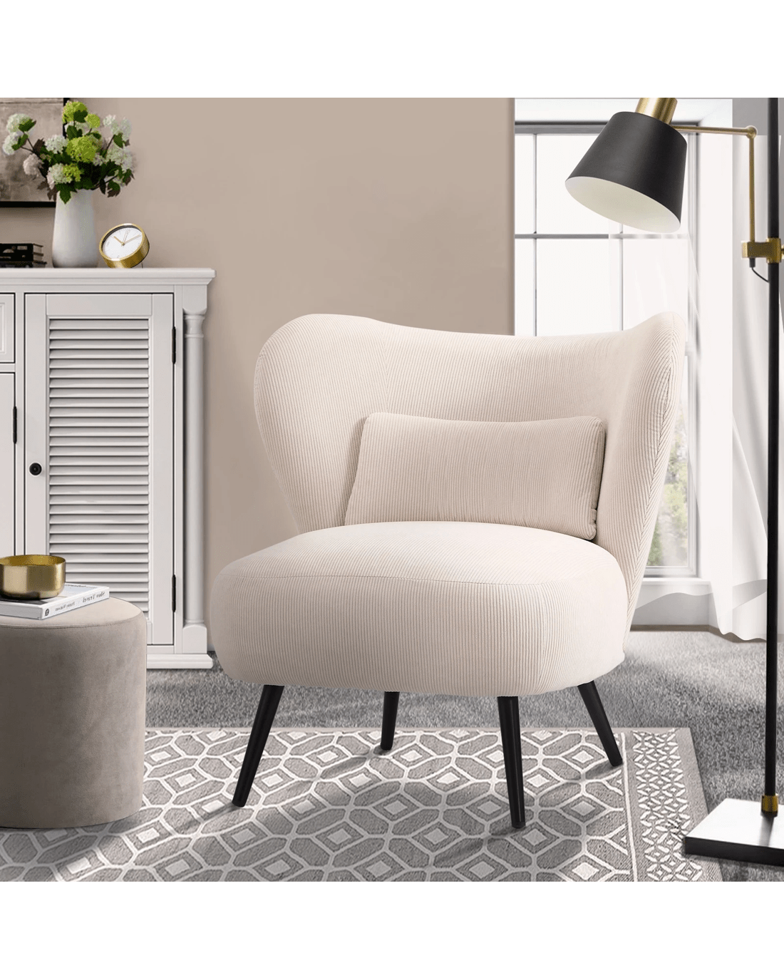 Oikiture Armchair Lounge Chair With Lumbar Pillow Wingback Velvet - Beige