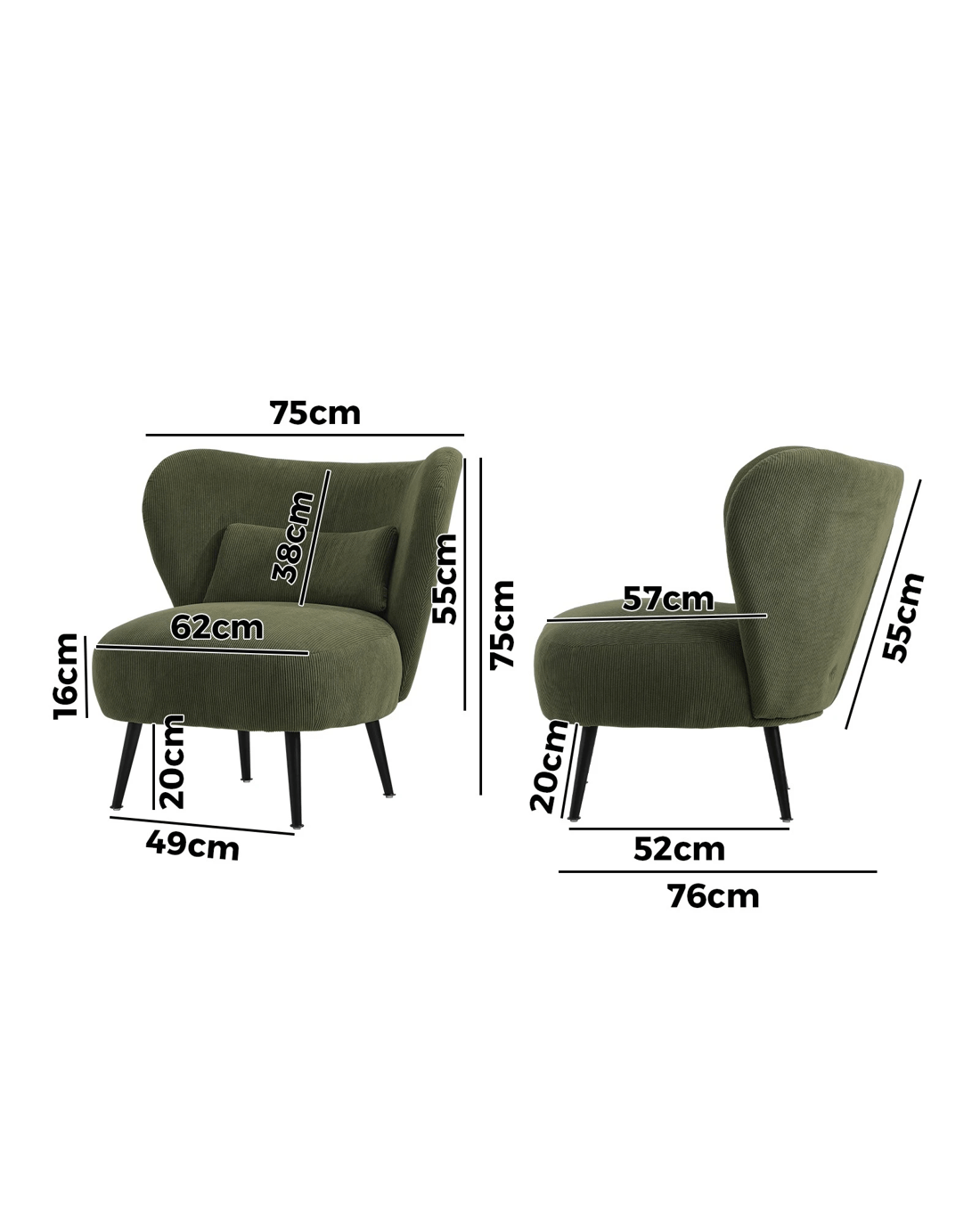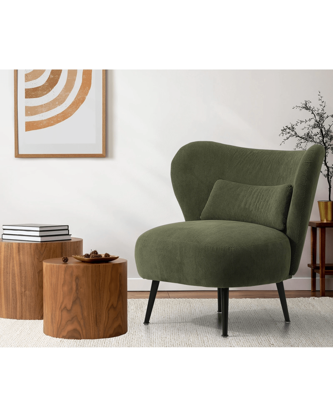Everyone has their favourite armchair at home. It's the one you go to for relaxation, rest, enjoying entertainment on TV or catching up with your social media. Nothing beats its fit and comfort compared to the rest of the horde. Guess what? This Oikiture Armchair is about to become the new rave for you. With its generous profile proportions incorporating a wide winged backrest and deep seat, the armchair is enriched with full comfort all round. You are certainly well-supported in every department of your body, including a much-appreciated lumbar pillow for your back. Run your hands over the armchair and you'll be duly impressed with the rich, textured upholstery that comes with velvety corduroy fabric. Construction wise, the wooden frame is durable and sturdy and splay black powder-coated metal legs will ensure that stability is never compromised. Finishing is meticulous to say the least. So fancy a sit down in this beautiful accent piece? Get your order in today and choose your desired colourto match up with your discerning home decor.