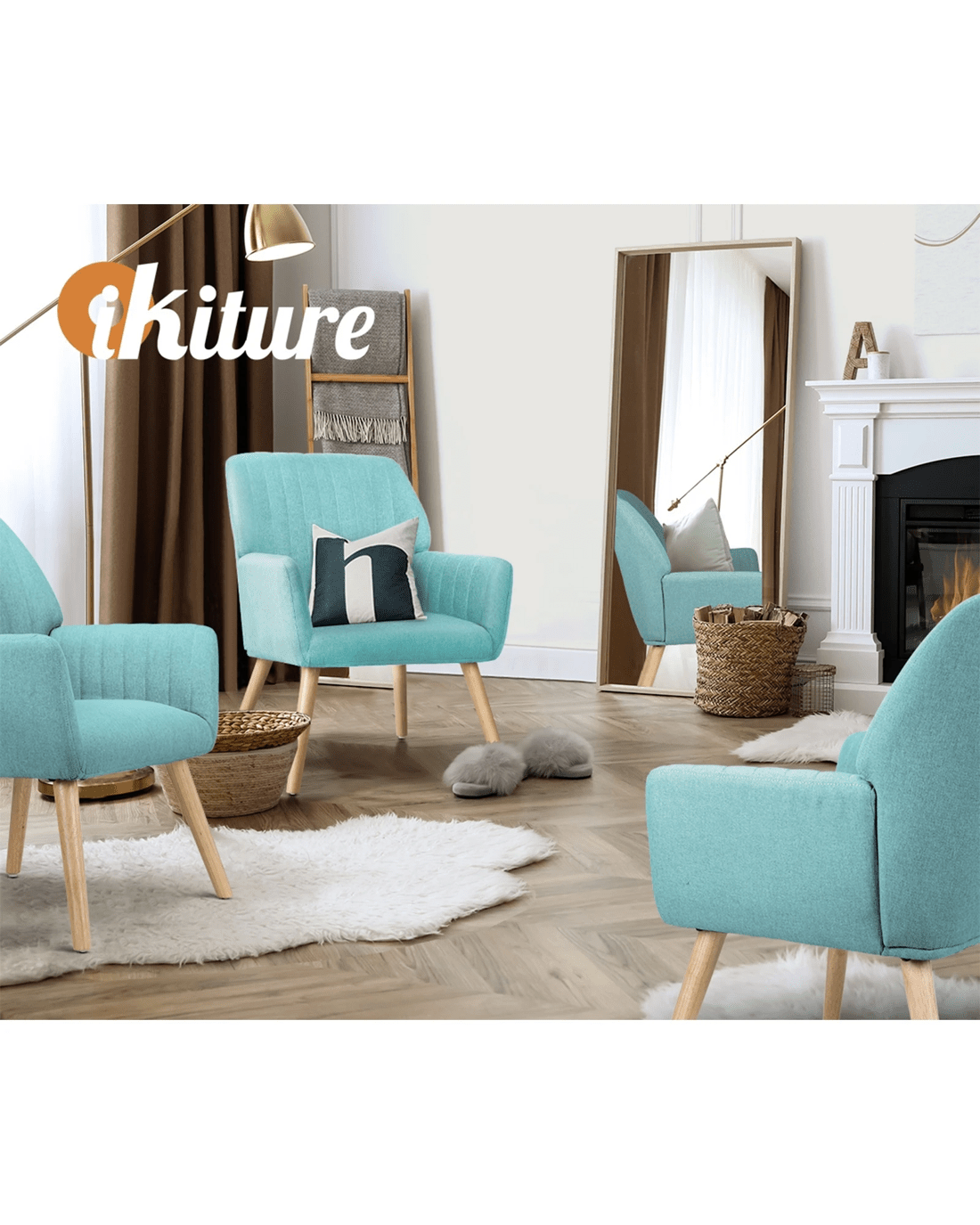Oikiture Armchair Lounge Sofa Chair Fabric Accent Chairs Armchairs Couches - Blue