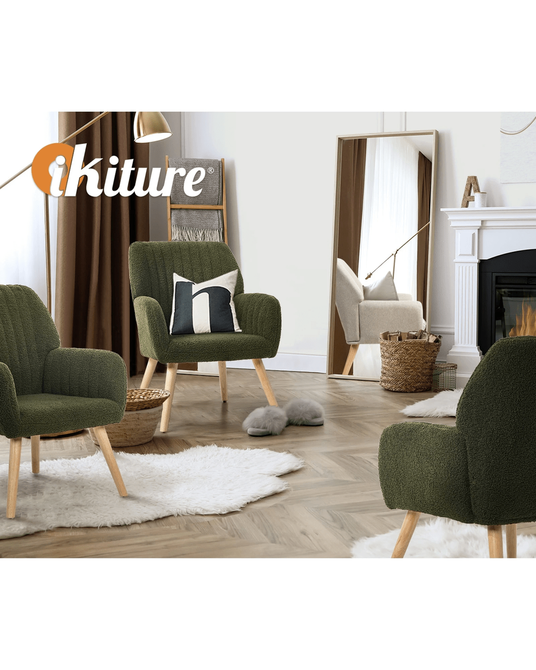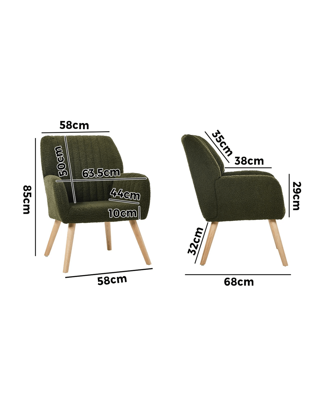 Oikiture Armchair Lounge Sofa Chair Sherpa Accent Chairs Armchairs Couches - Green