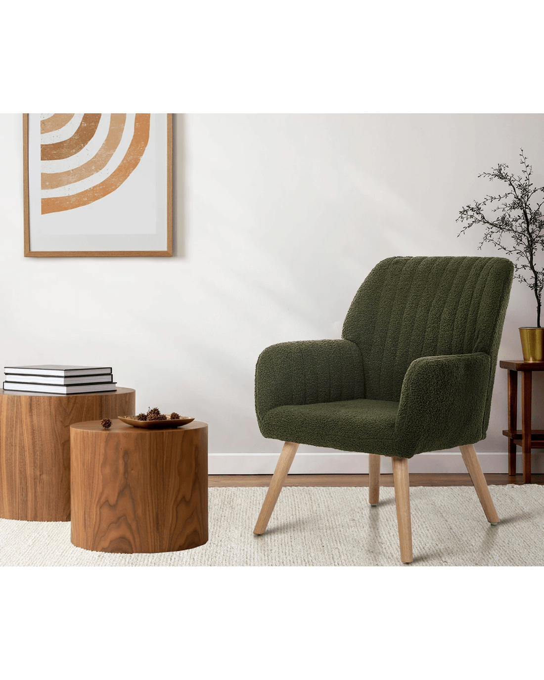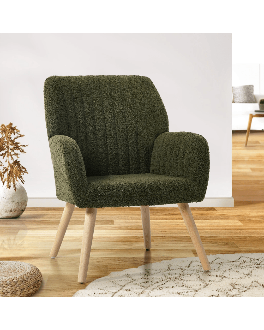 - Sherpa upholstery、Rubber wood legs
