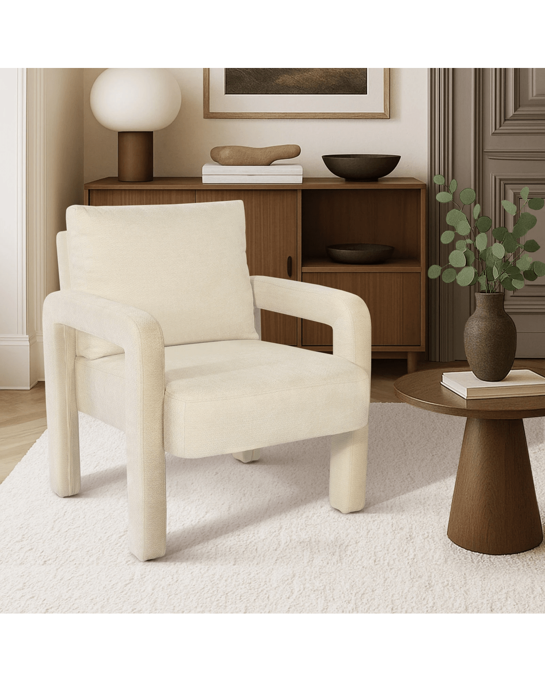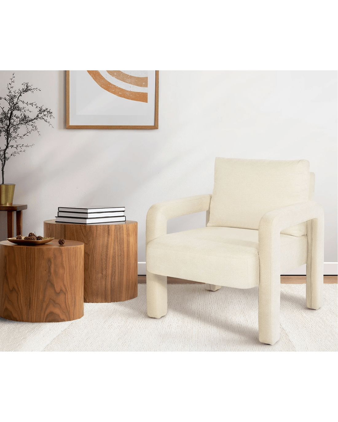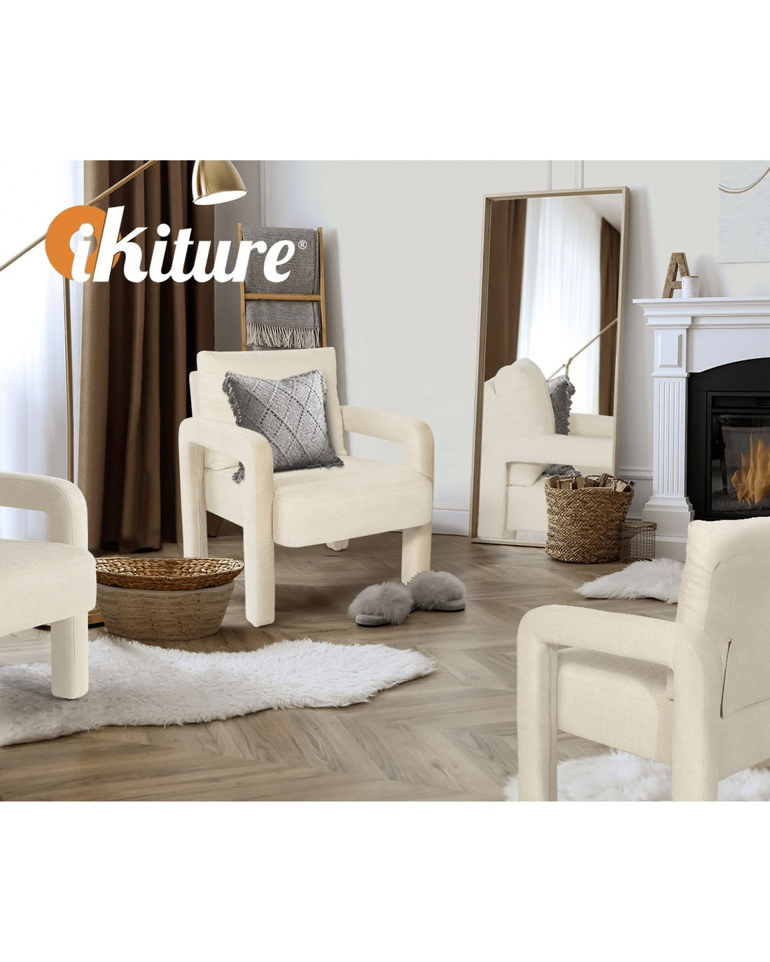 Oikiture Armchair Velvet Accent Chairs 1 Seater Lounge Sofa Chair - Beige