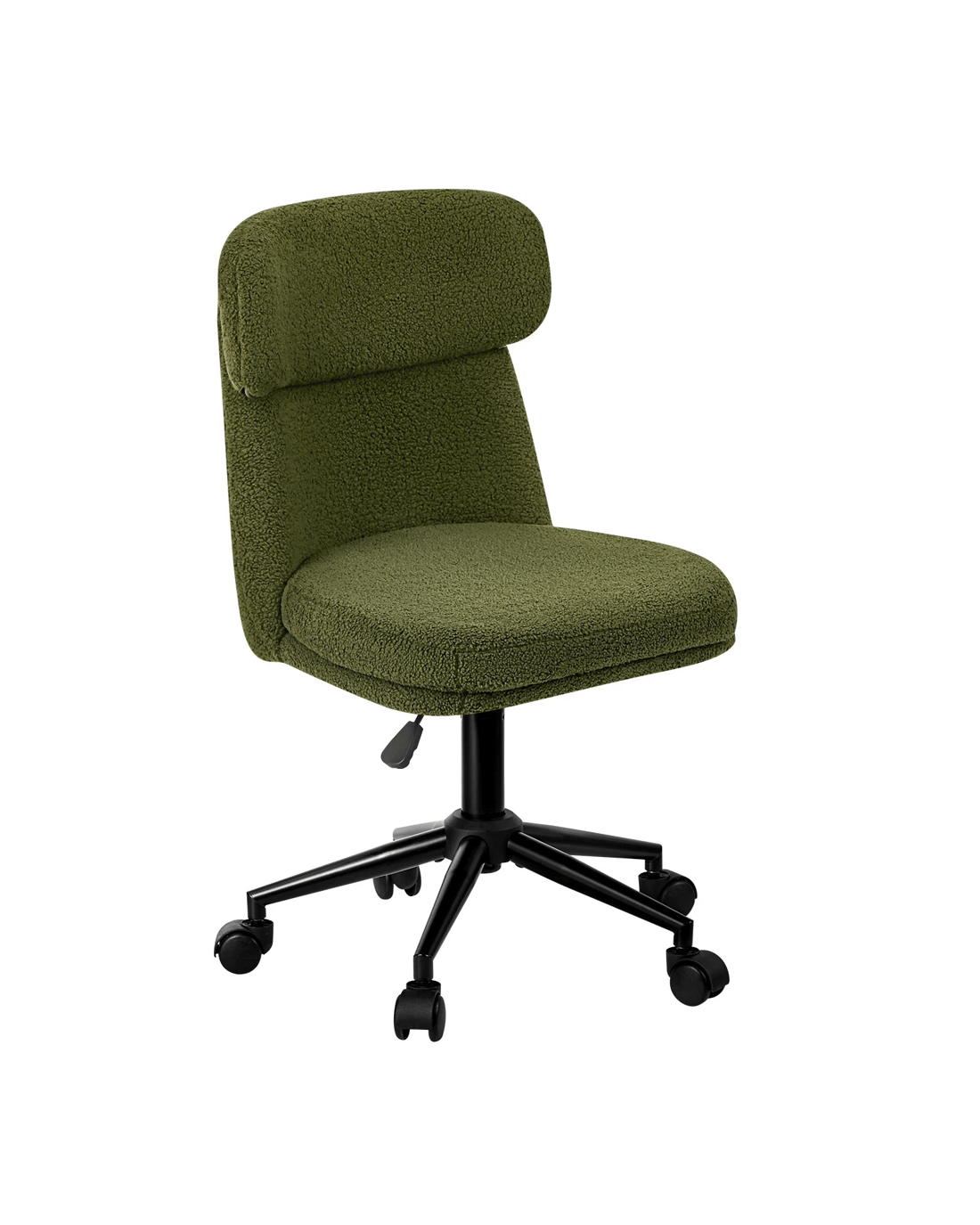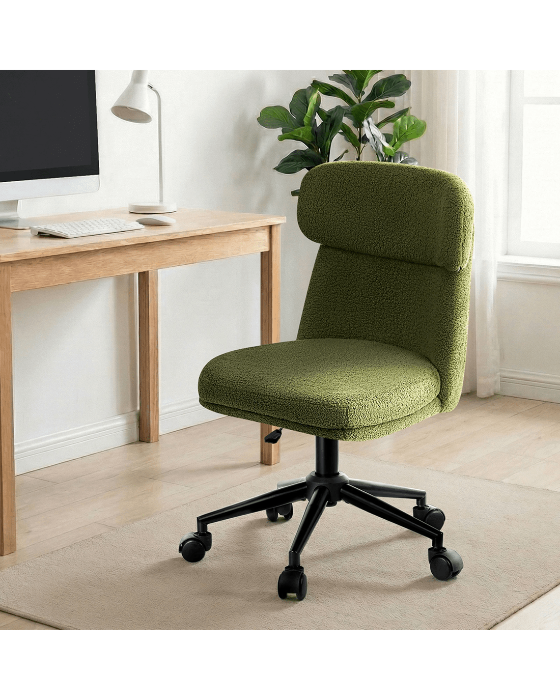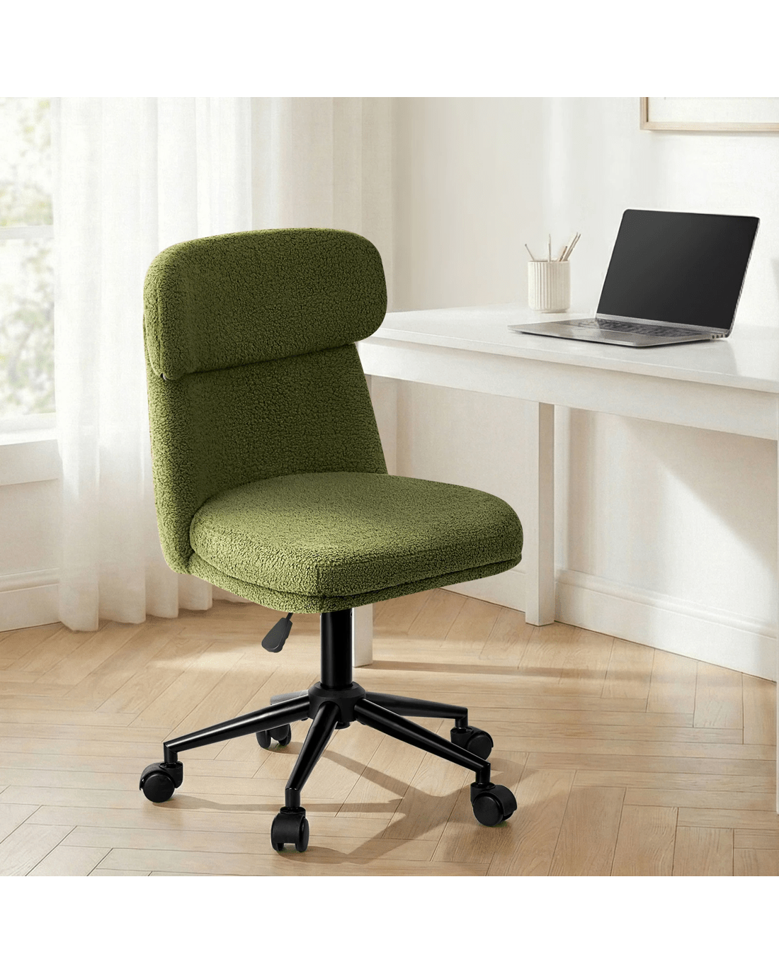 Upholstered in cosy Sherpa fabric for both the seat and backrest, the office chair exudes supreme comfort with style. Plus, the armless design allows the office chair to adapt to various spatial layouts, and it can be fully tucked under the desk to save more floor space.