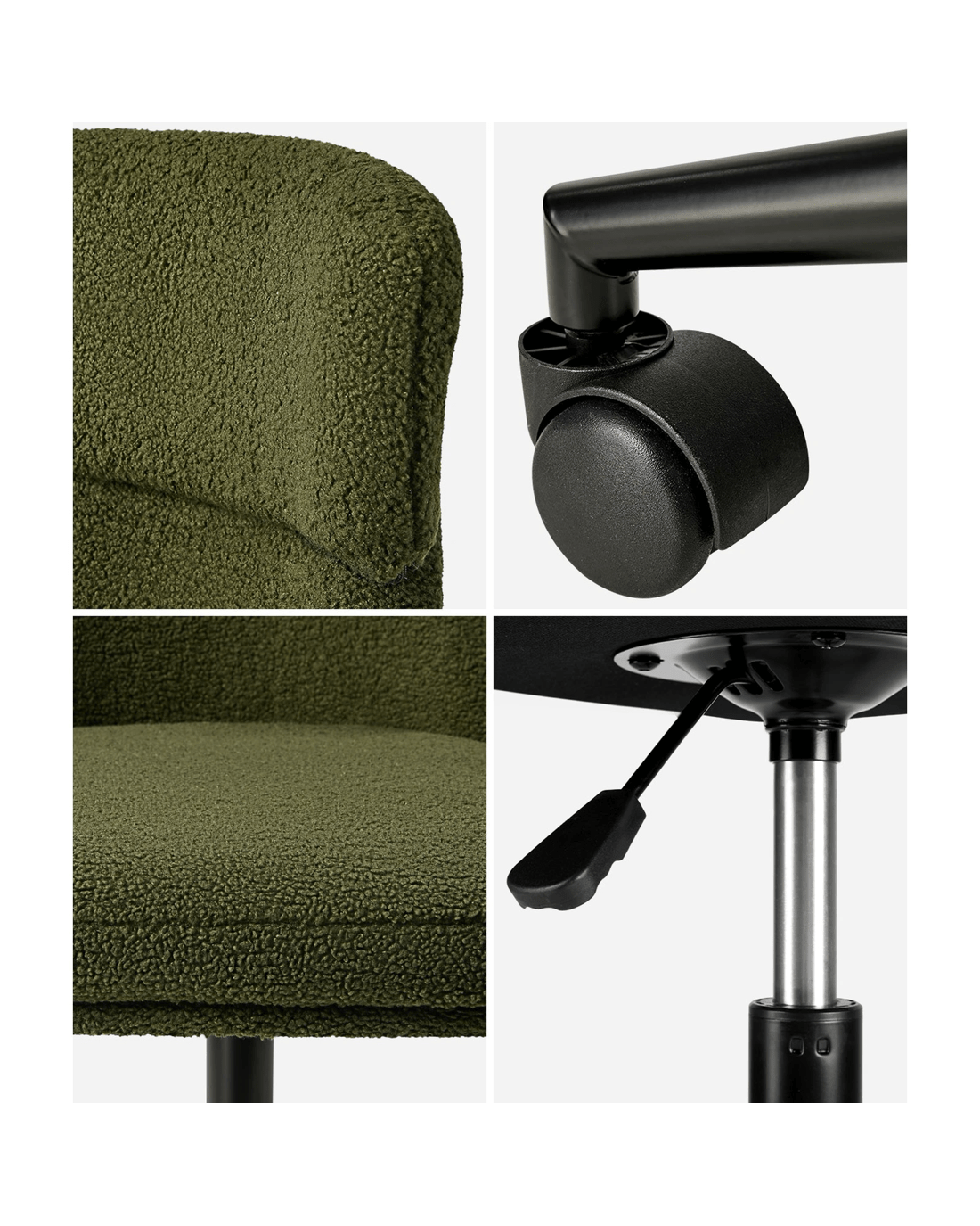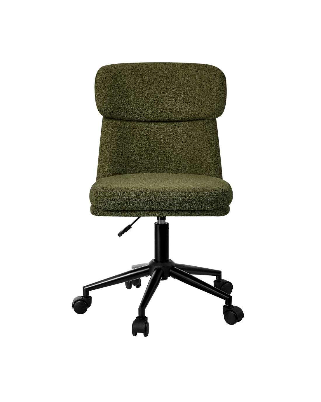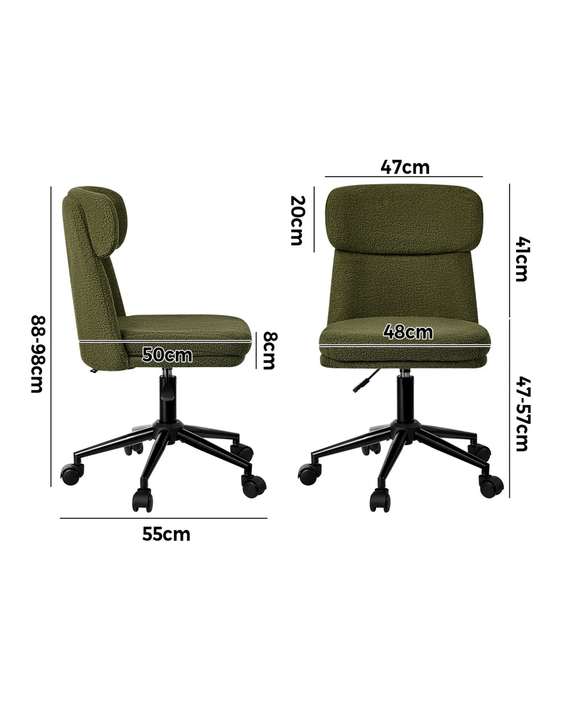 Upholstered in cosy Sherpa fabric for both the seat and backrest, the office chair exudes supreme comfort with style. Plus, the armless design allows the office chair to adapt to various spatial layouts, and it can be fully tucked under the desk to save more floor space.