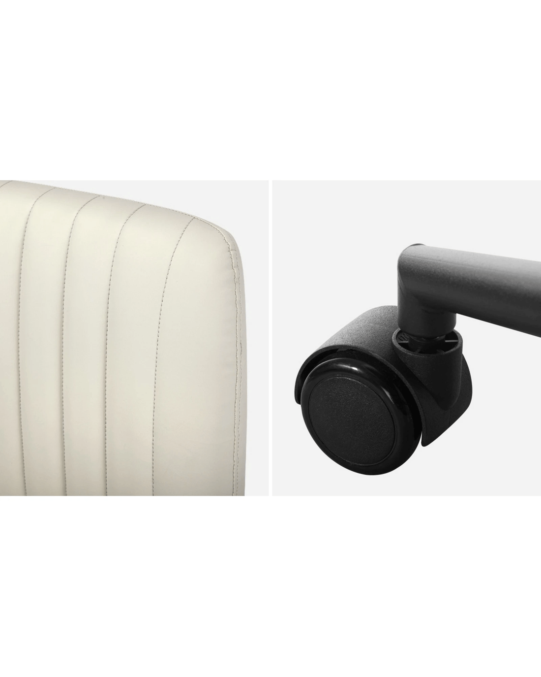 Lockable adjustments to the office chair are enabled for height and backrest angle, and it easily rotates 360 degree to face any direction required. What is more, the office chair features a cross base design for added stability and the spinning castors make it effortless to move or transport the chair to any location.