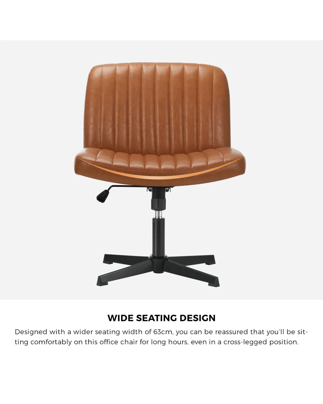 Upholstered in PU leather fabric, the office chair features a wider seat and backrest that provide better comfort and support. The difference felt with other office chairs is literally night and day with the extended dimensions that help to alleviate strain on your back and posterior. Plus, the office chair also appears and feels so much more luxurious with the generous padding and tufted needlework on the backrest to help spruce up your otherwise bland-looking work station. Needless to say, the workmanship is meticulous to near-flawless perfection in every aspect of the office chair.
