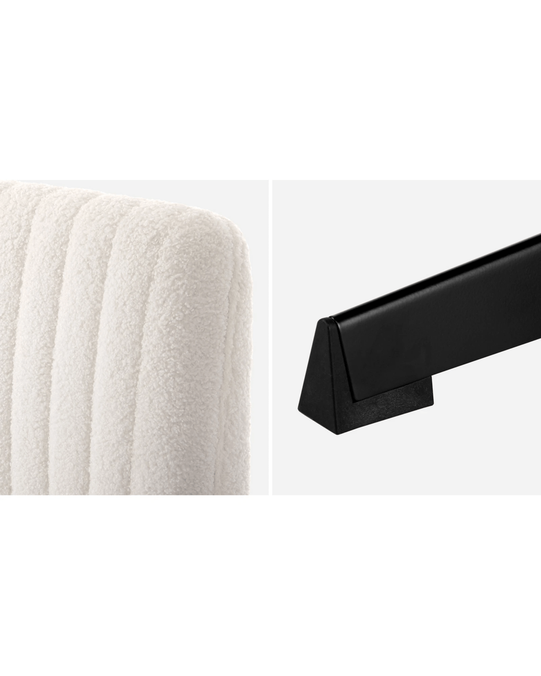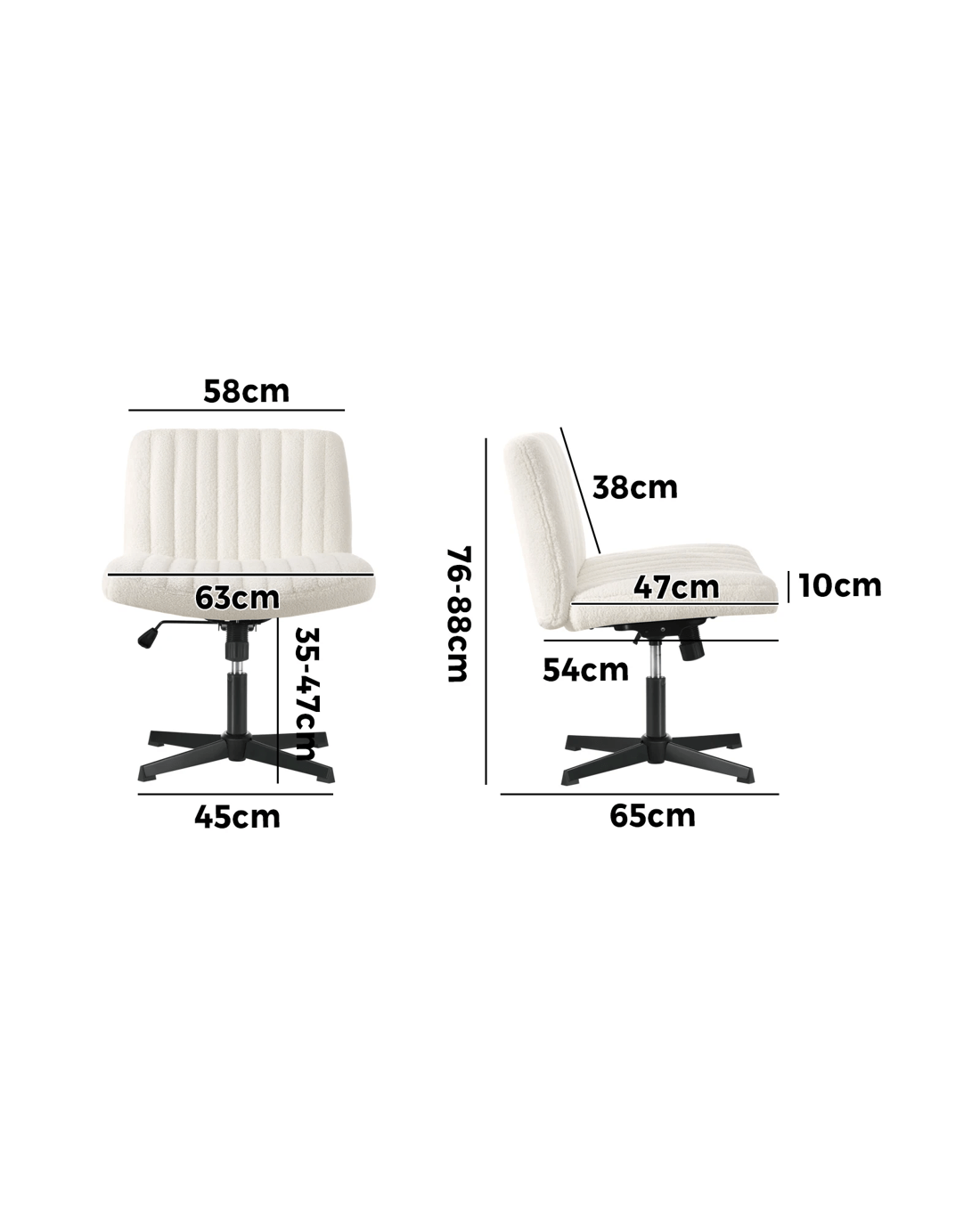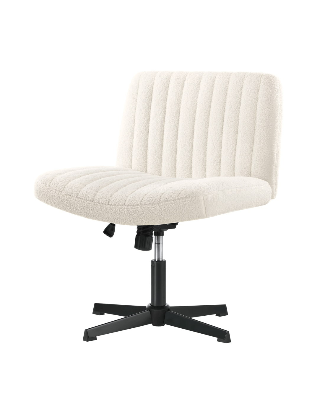 Crafted with a unique cross-leg base, this chair stands out as a symbol of modernity and stability. Its sleek Sherpa white fabric seat adds a touch of luxury to your workspace, ensuring both visual appeal and comfort. Our chair features a dynamic rocking backrest that allows you to gently sway and recline while you work. This soothing motion promotes relaxation and helps reduce stress during long hours at your desk. It is a game-changer for those who appreciate a little movement while they work.