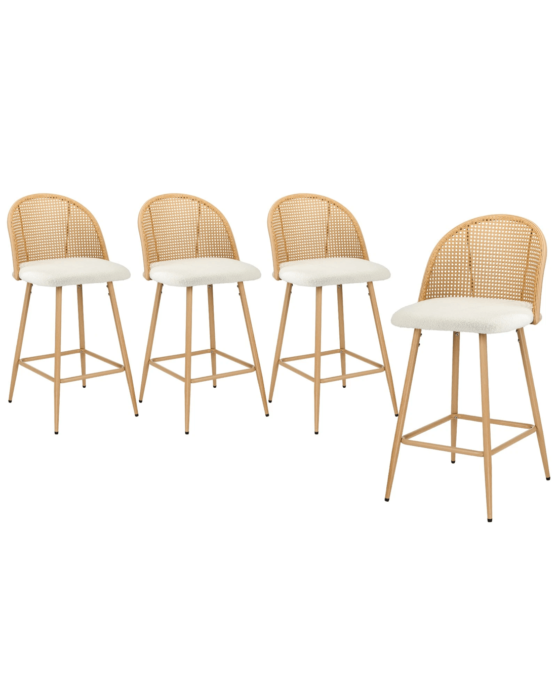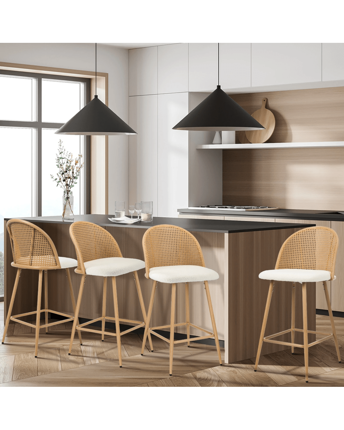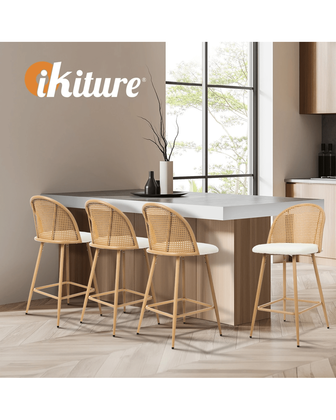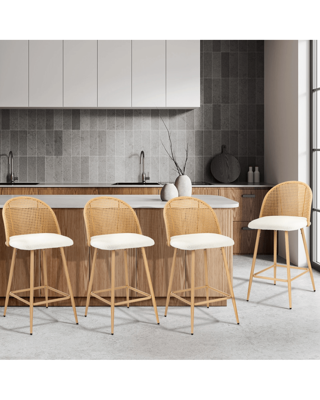 Sold by Kamprad's Oikos 1943Oikiture Bar Stools Kitchen Counter Stool Rattan Dining Chair Boucle X4 - White