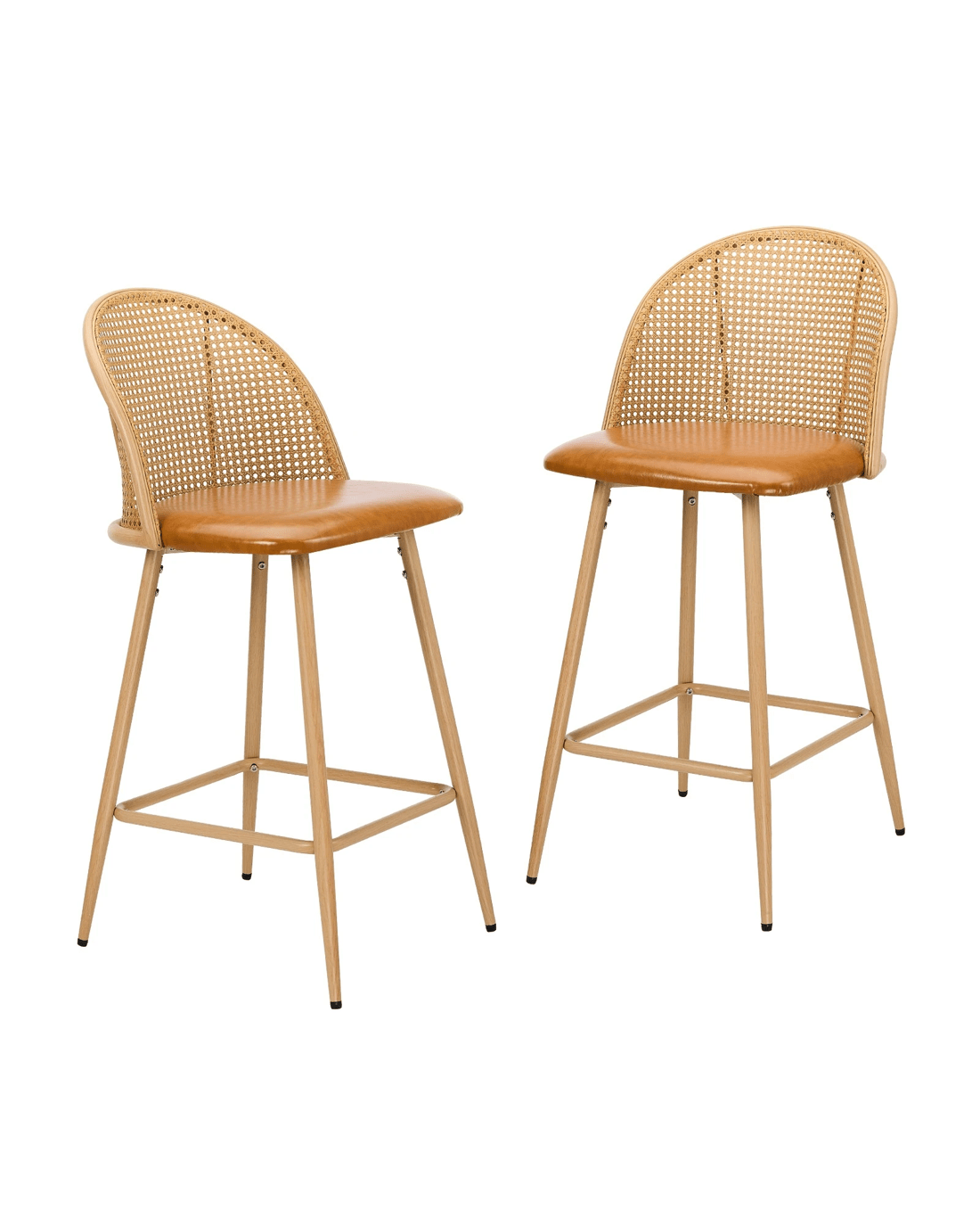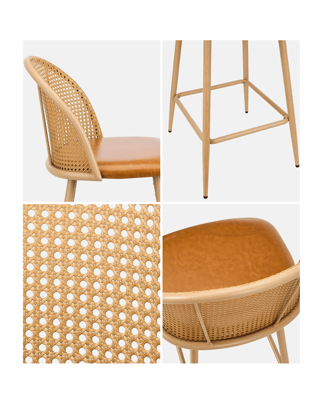 - PU leather, Steel, PE rattan