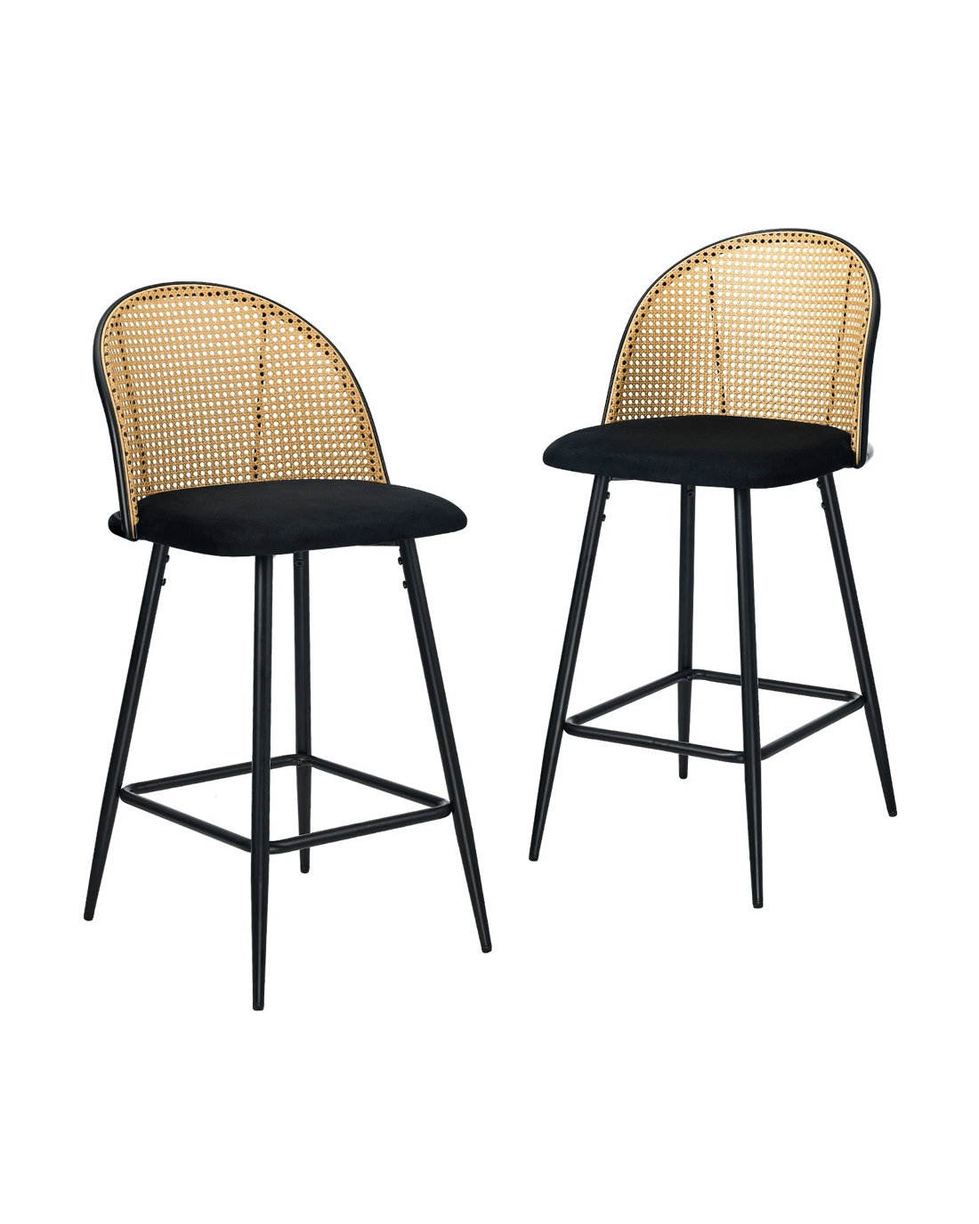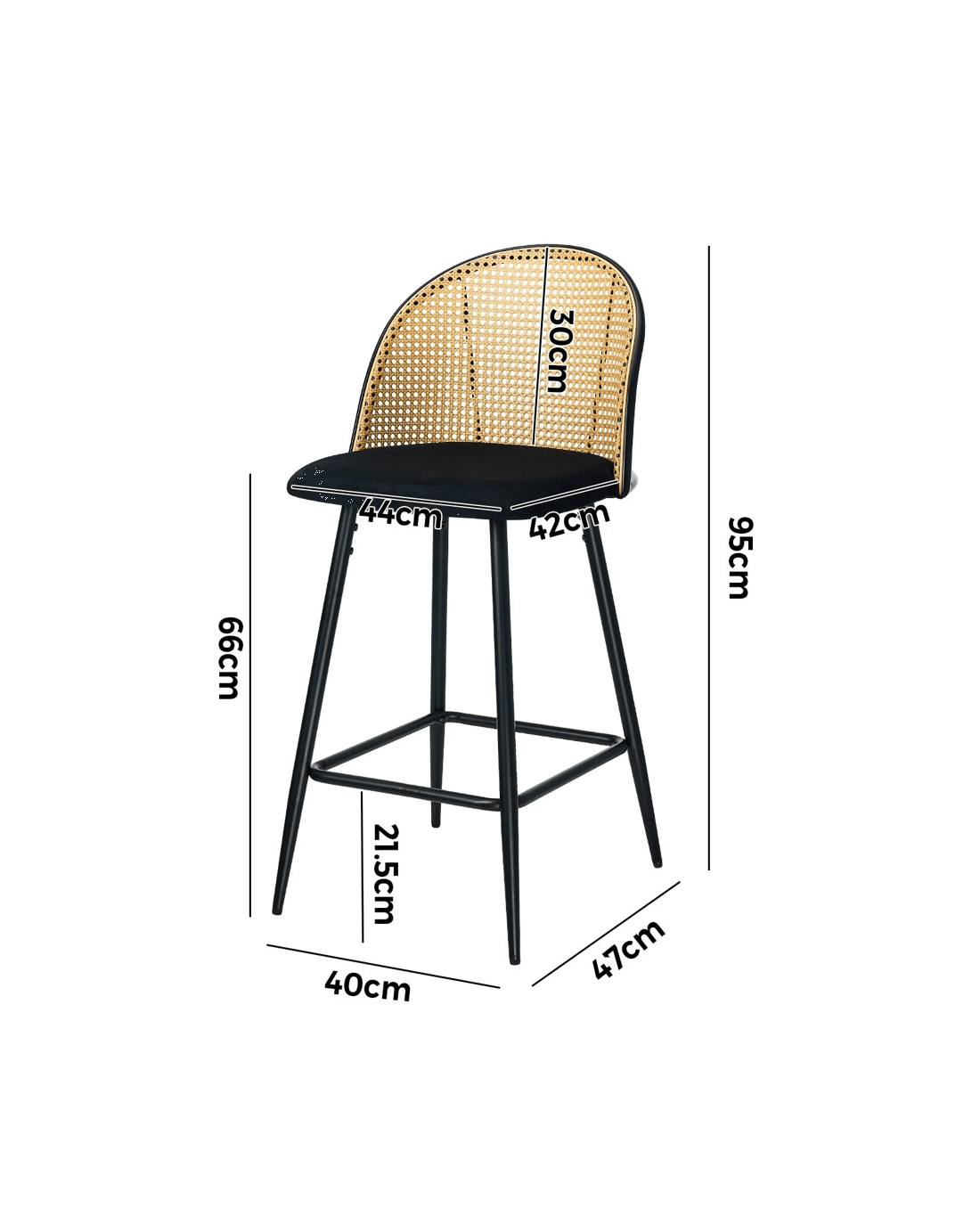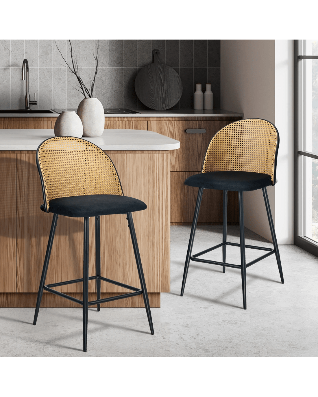 Sold by Kamprad's Oikos 1943Oikiture Bar Stools Kitchen Counter Stool Rattan Dining Chair Velvet X2 - Black